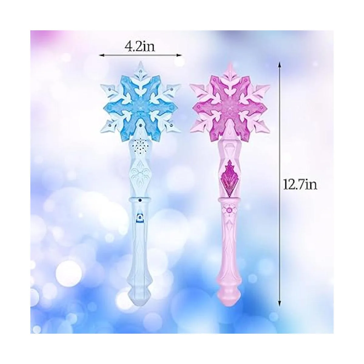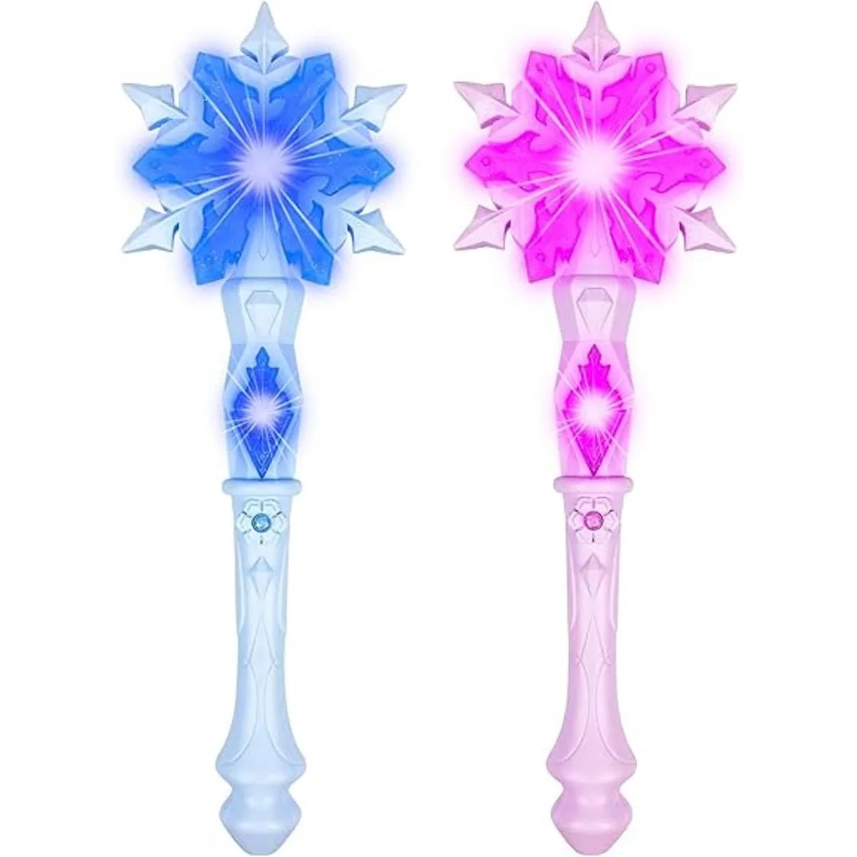 Varita de copo de nieve congelada iluminada con sonido sensible a la movimiento, juguete mágico para niños y niñas, accesorios de disfraz de princesa para fiesta de cumpleaños, 2 piezas, azul y rosa