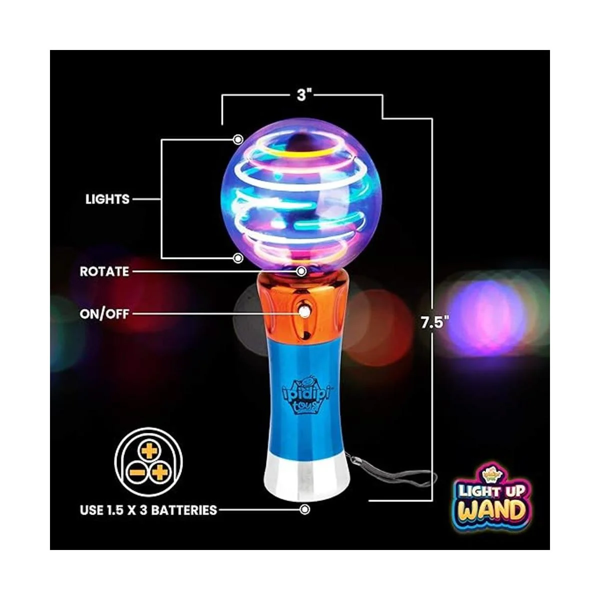 Impresionante acción de giro: un espectáculo de luz giratoria que captura la imaginación y mantiene a los niños ocupados durante horas. Con solo pulsar un botón, esta varita giratoria de 7.5 pulgadas ilumina cualquier habitación con impresionantes LED. Simplemente coloca 3 pilas AA para alimentar la acción.