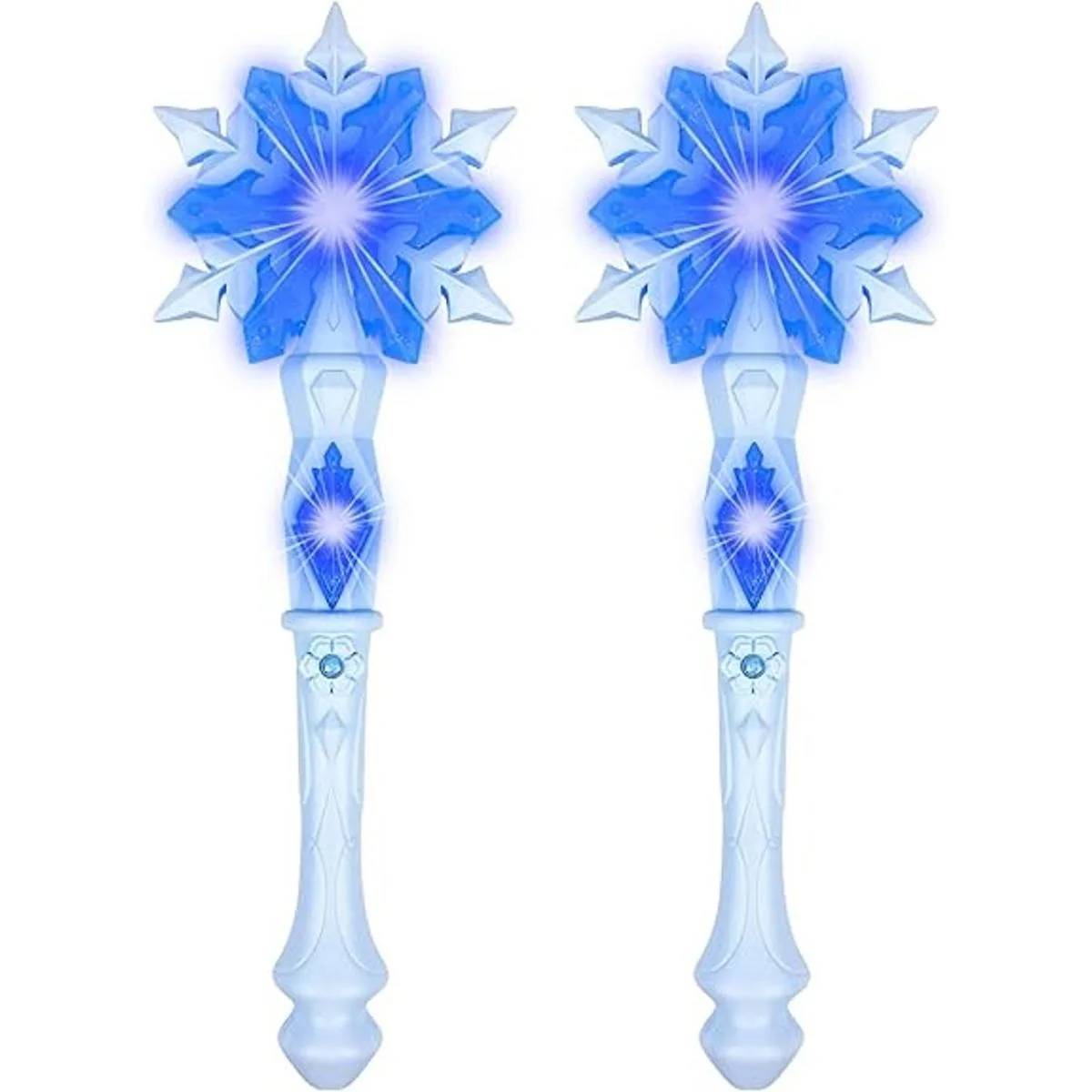 Varitas de copo de nieve congeladas iluminadas con sonido sensible a la movimiento, juguete mágico para niños y niñas, recuerdos de fiesta de princesa, disfraz de Navidad, accesorios de cosplay, 2 piezas, azul