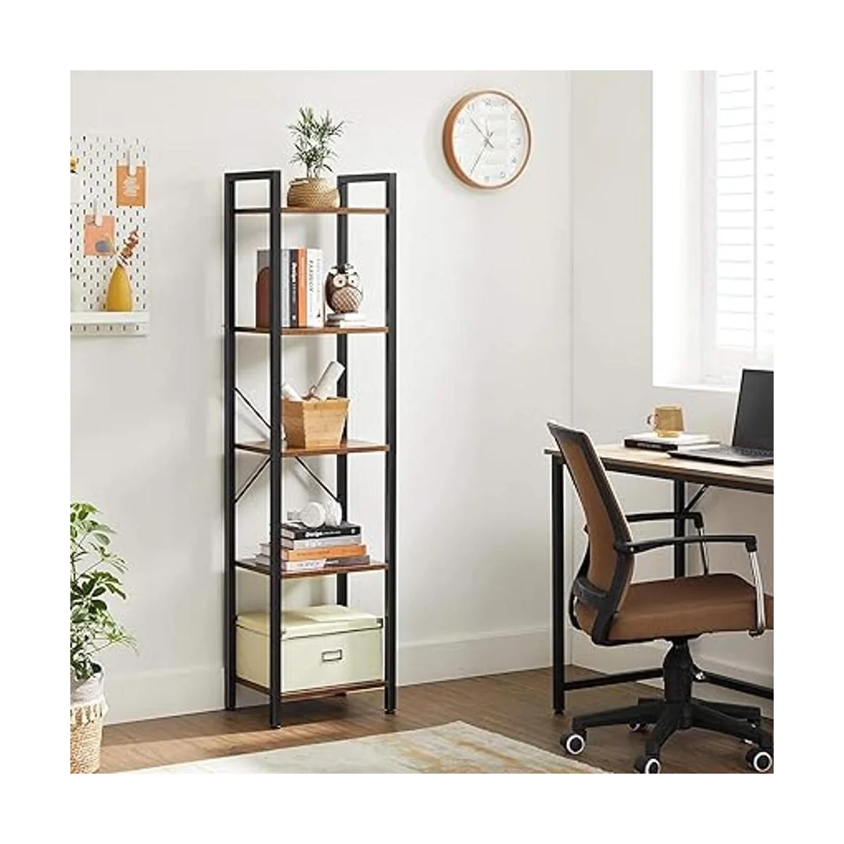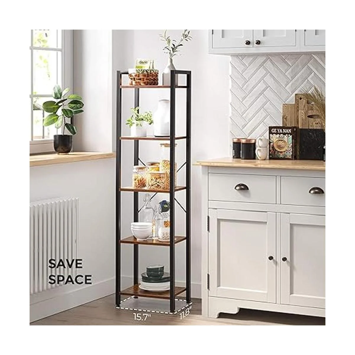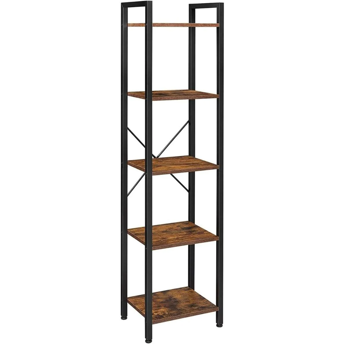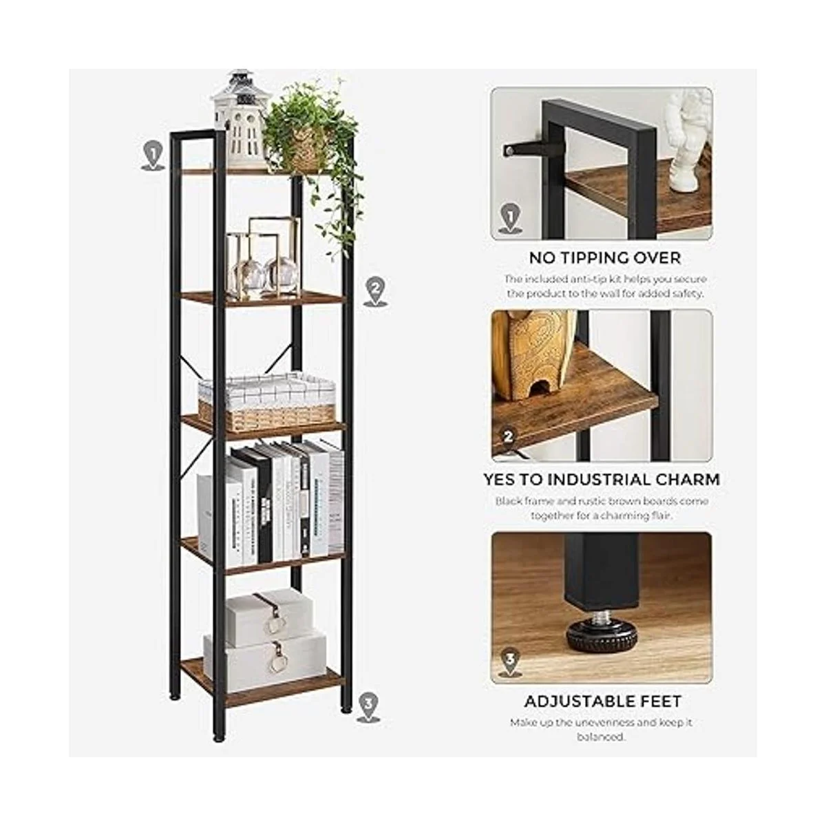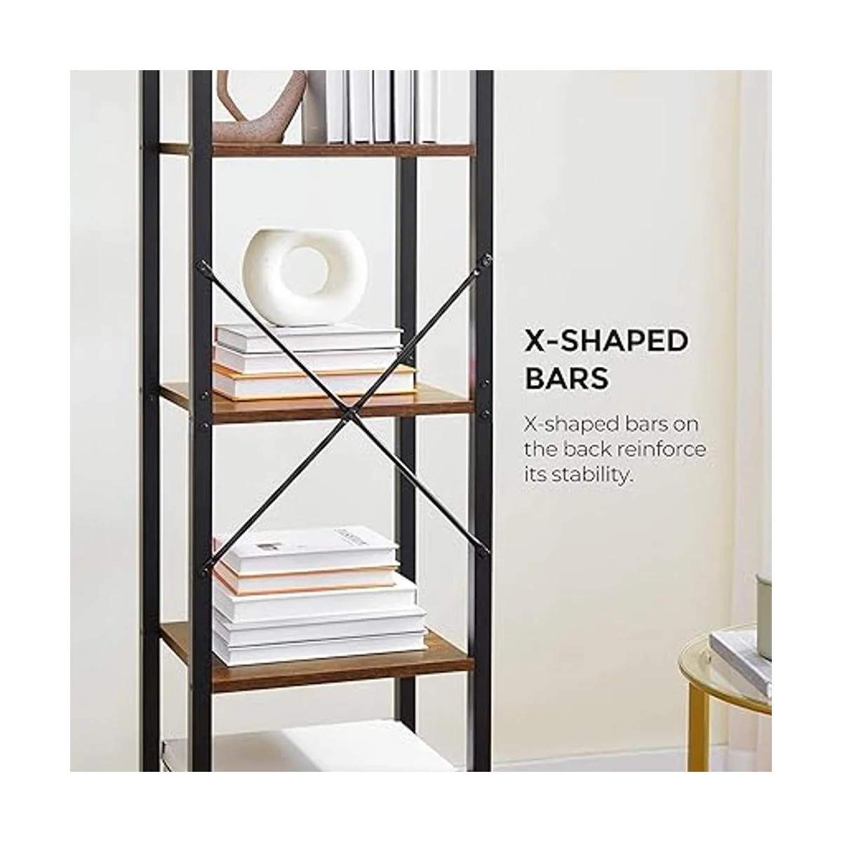 VASAGLE ALINRU Estantería de almacenamiento de 5 niveles con marco de acero, para sala de estar, oficina, estudio, pasillo, estilo industrial, marrón rústico y negro ULLS100B01