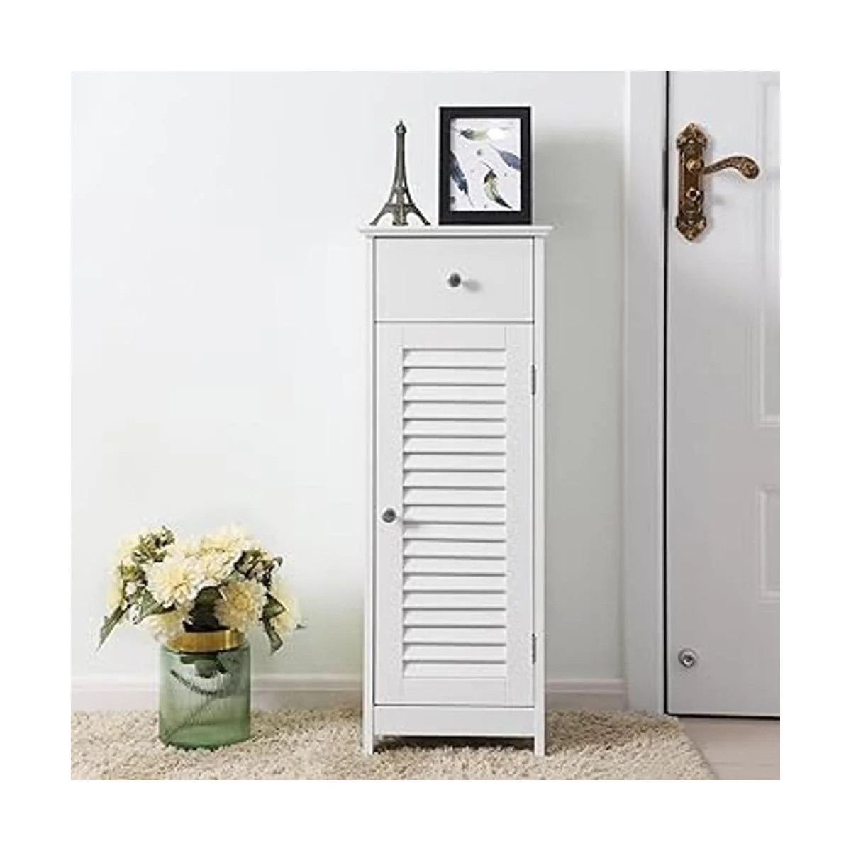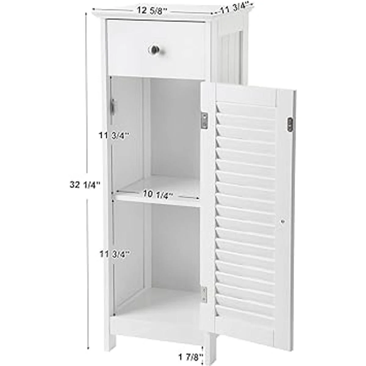 Utiliza tu espacio, al máximo: con un pequeño espacio de 12.6 pulgadas de largo x 11.8 pulgadas de ancho, el armario de baño alto, con un cajón y un solo armario de puerta con 2 compartimentos, ofrece más espacio de almacenamiento mientras ocupa poco espacio en el suelo