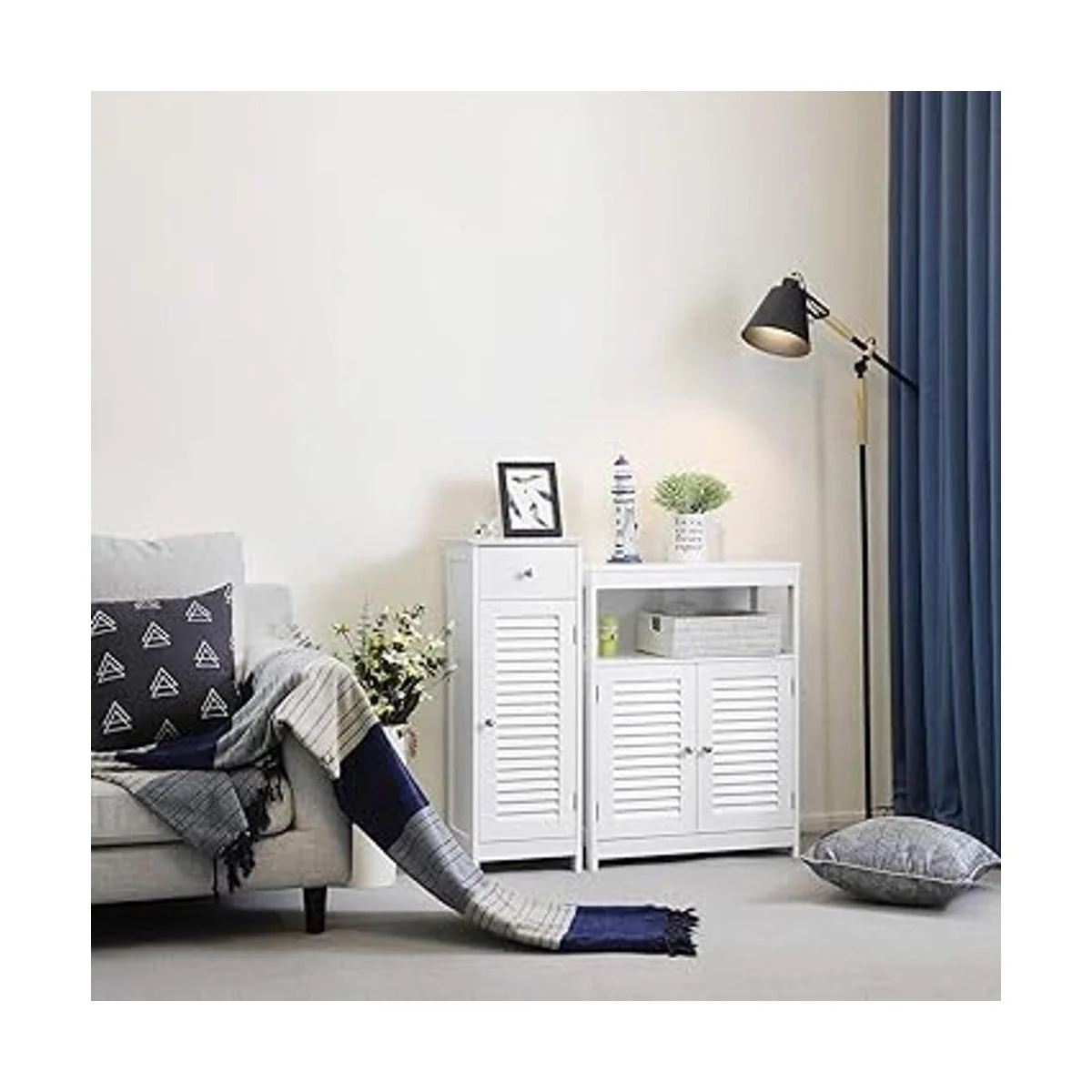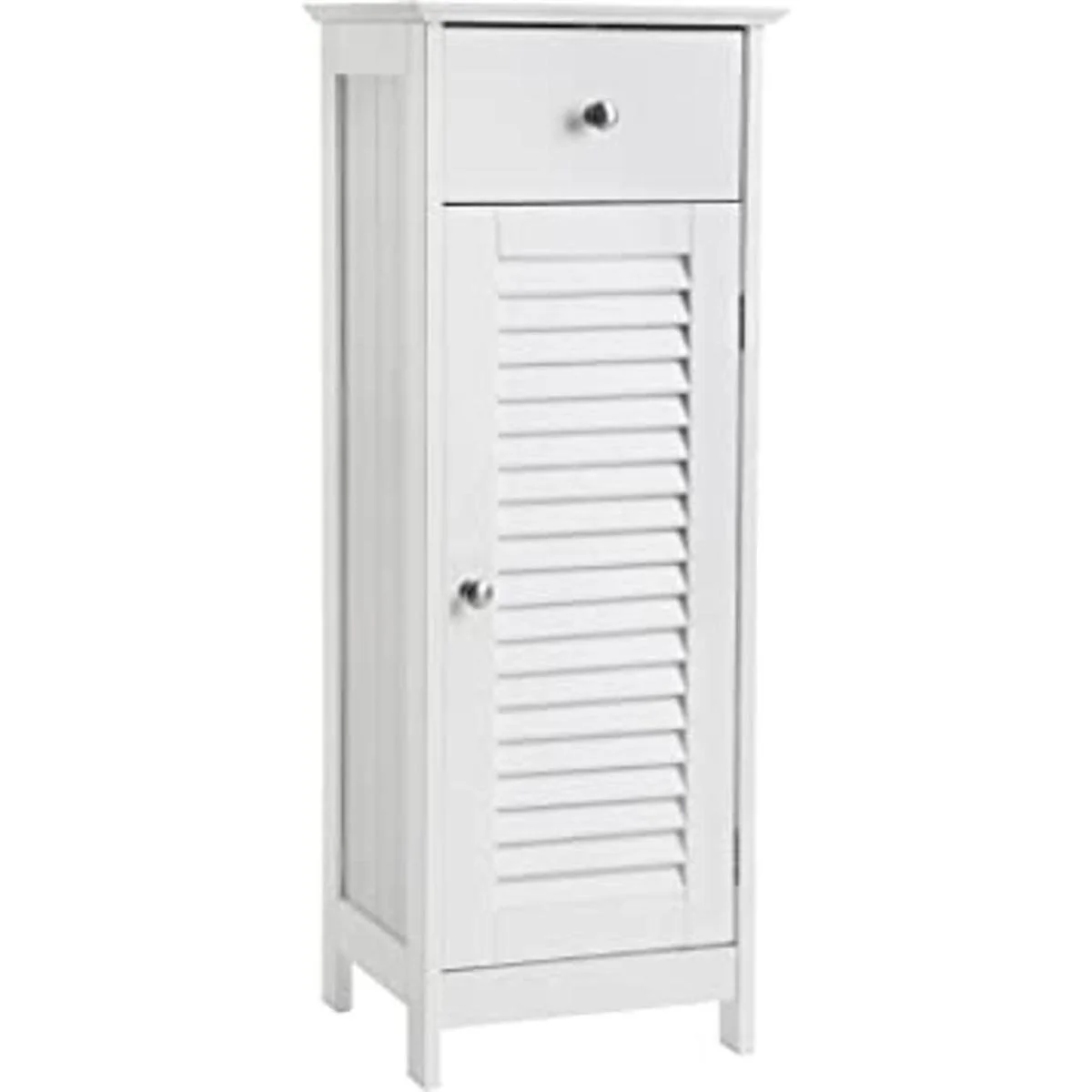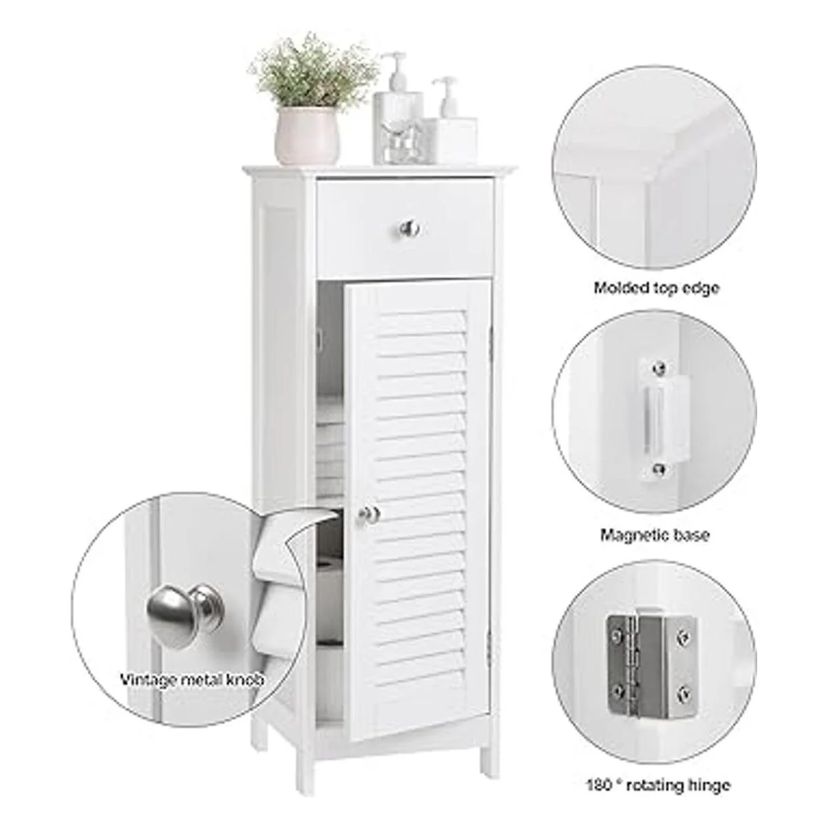 VASAGLE Juego de organizador de almacenamiento para gabinetes de baño, con cajón y puerta de obturador individual de madera, blanco UBBC43WT