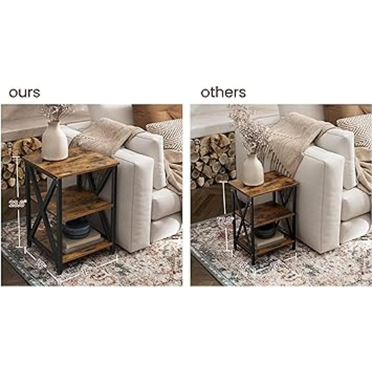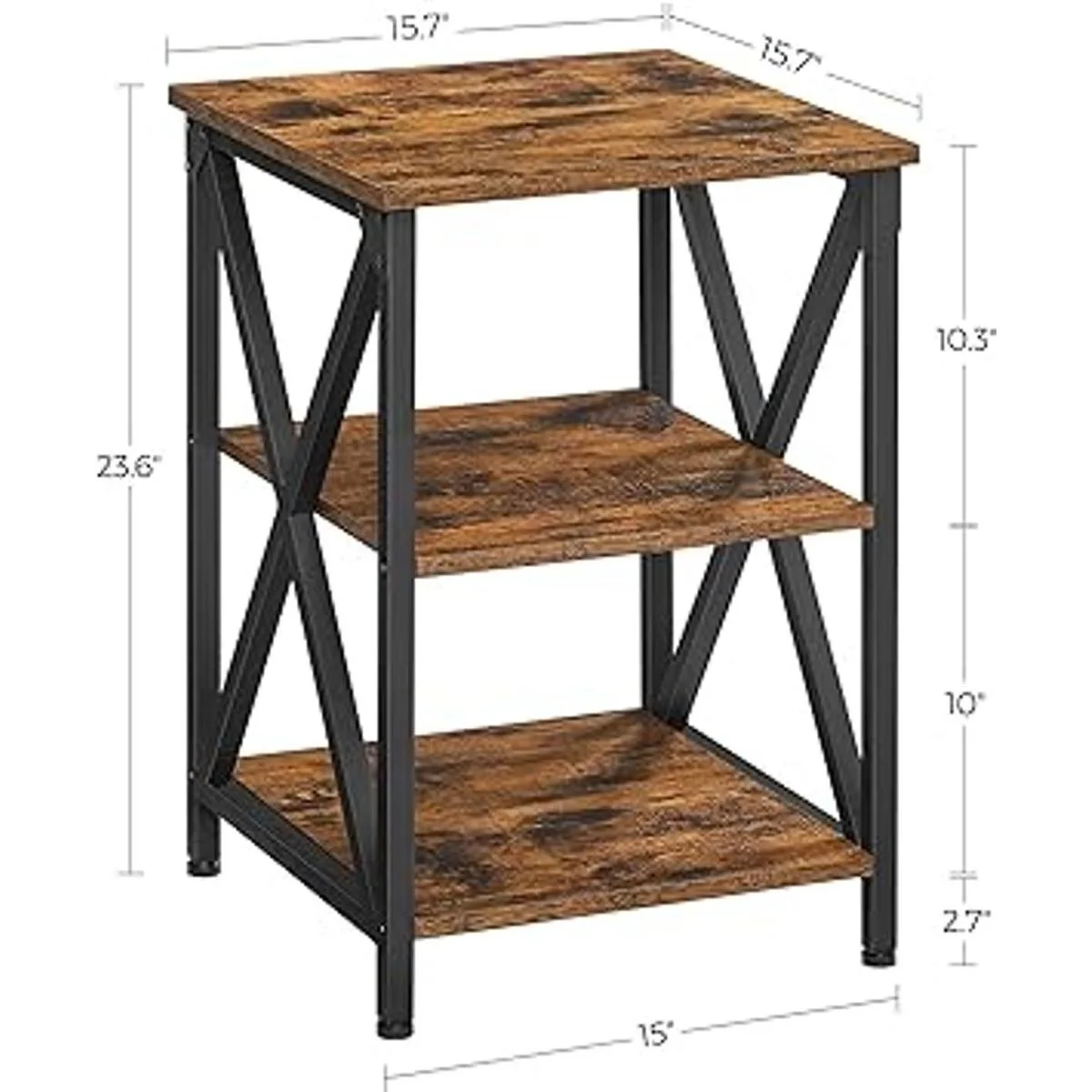 VASAGLE Mesa auxiliar, mesa auxiliar con almacenamiento, 15.7 x 15.7 x 23.6 pulgadas, mesita de noche con marco de acero en forma de X, mesa rústica para sala de estar, dormitorio, casa de campo de 3 niveles, marrón rústico y negro ULET278B01V1