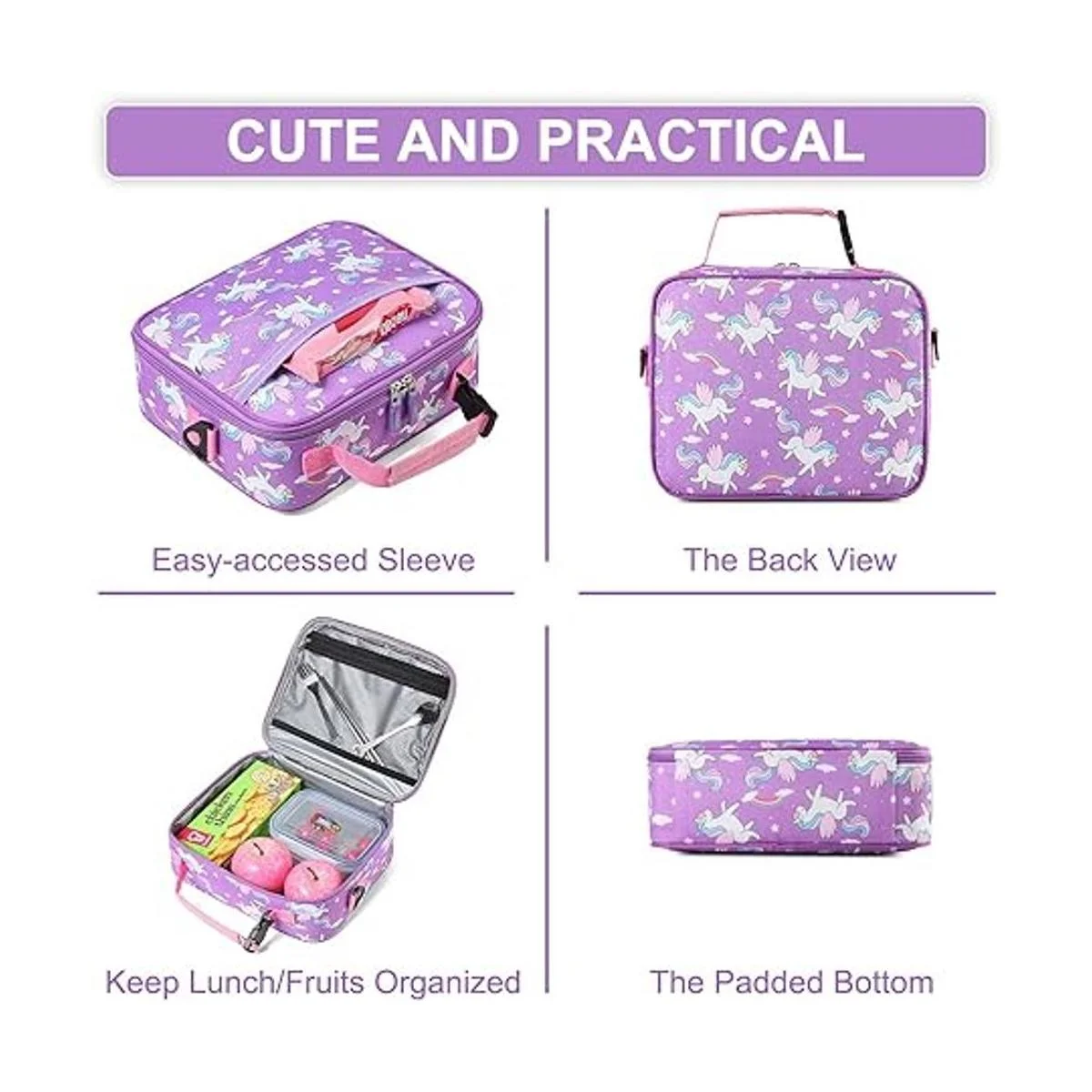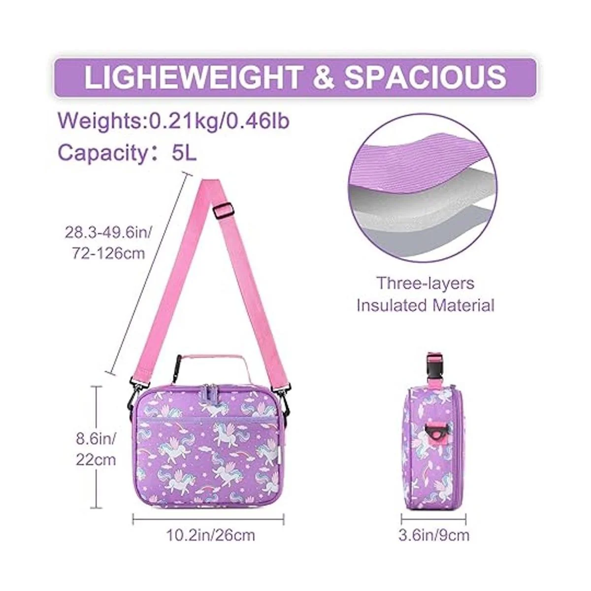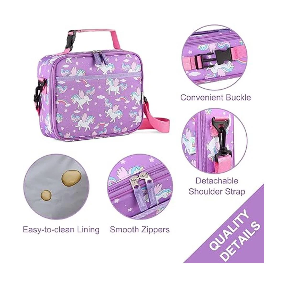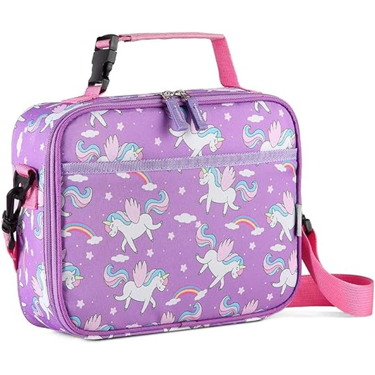 VASCHY Lonchera para niños, reutilizable, aislada, con correa de hombro desmontable para guardería, escuela, unicornio