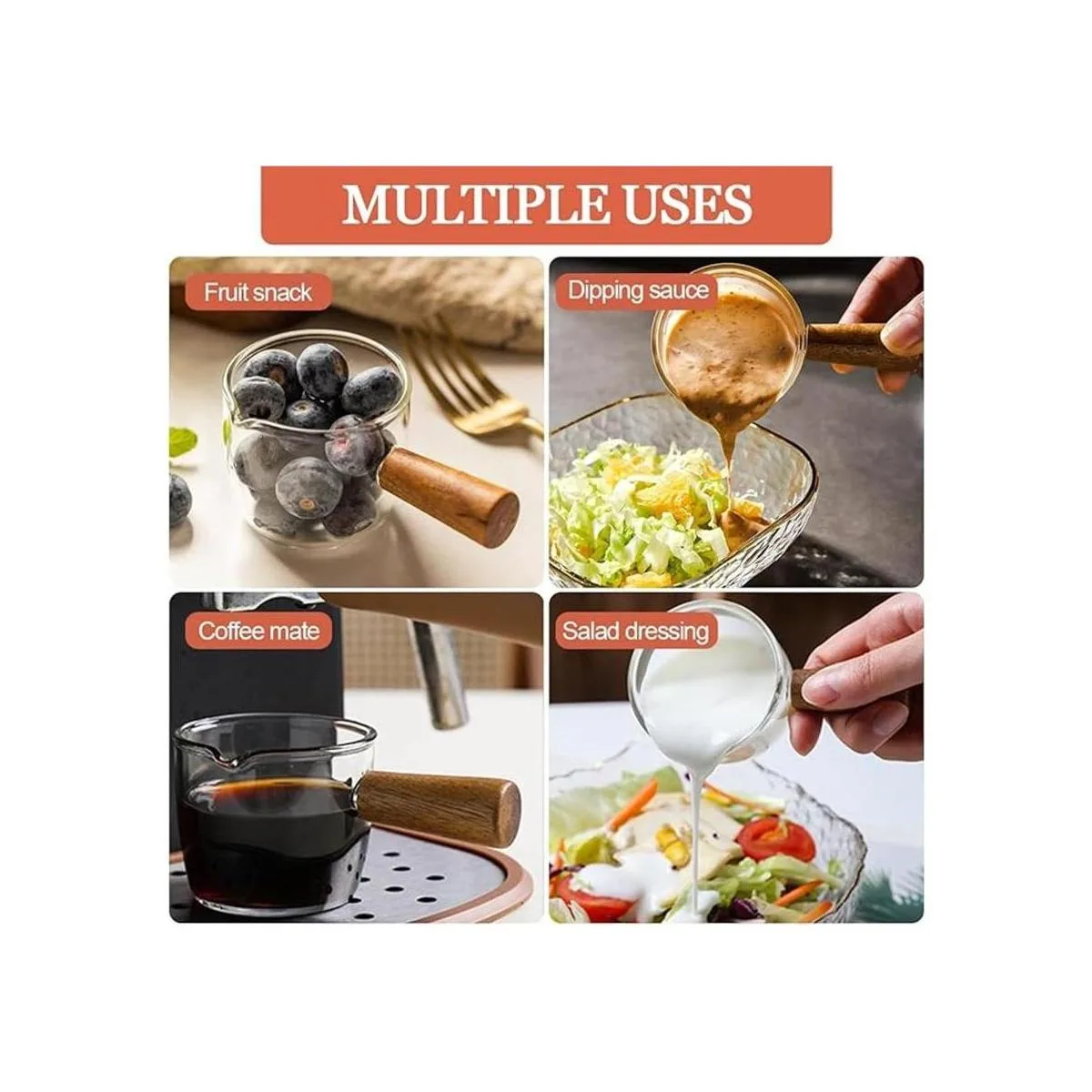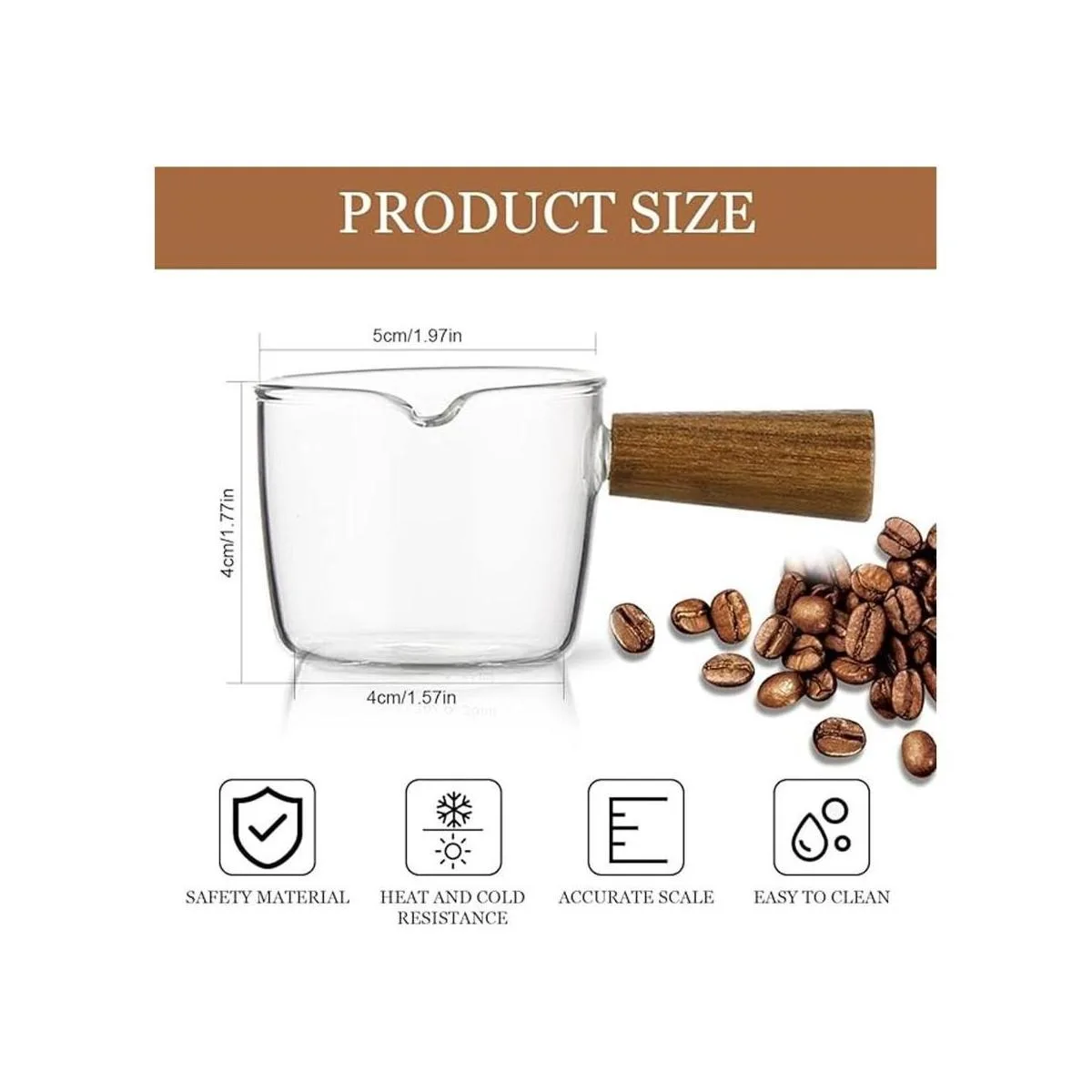 Vaso de chupito de café expreso con mango de madera, taza medidora triple jarra de leche, jarra de repuesto para café Barista, jarra de café, jarra de café y leche espresso, 2.5 fl oz 2 piezas