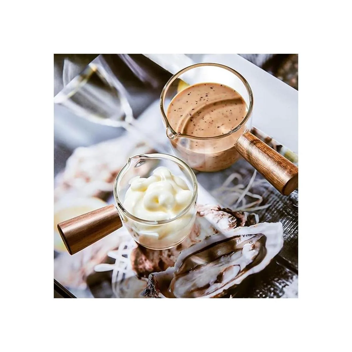 Buen rendimiento: estos vasos medidores expreso están hechos de quemaduras a alta temperatura, puedes verter agua caliente en solo vidrio congelado y no te preocupes por estallarlos, utilizamos súper pegamento en el mango de madera, no habrá problema de caerse