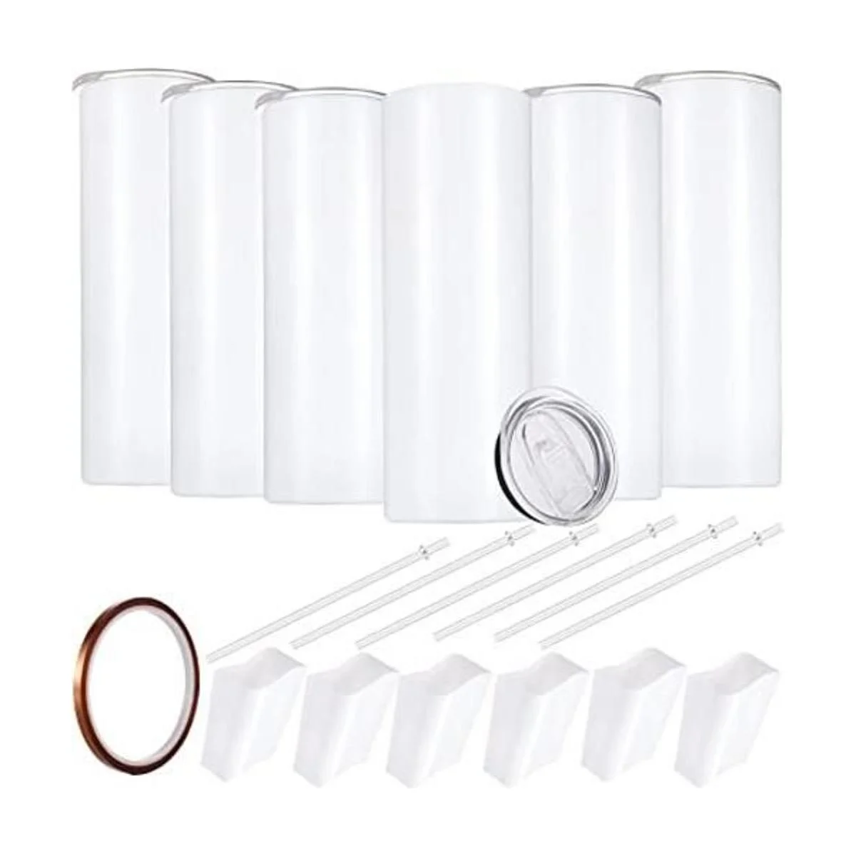 El paquete incluye: 6 vasos delgados de 20 onzas con popotes y 1 cinta térmica y 6 envolturas retráctiles, cantidad suficiente para que lo uses o lo des a otros como regalo.