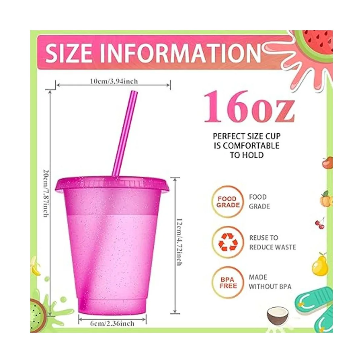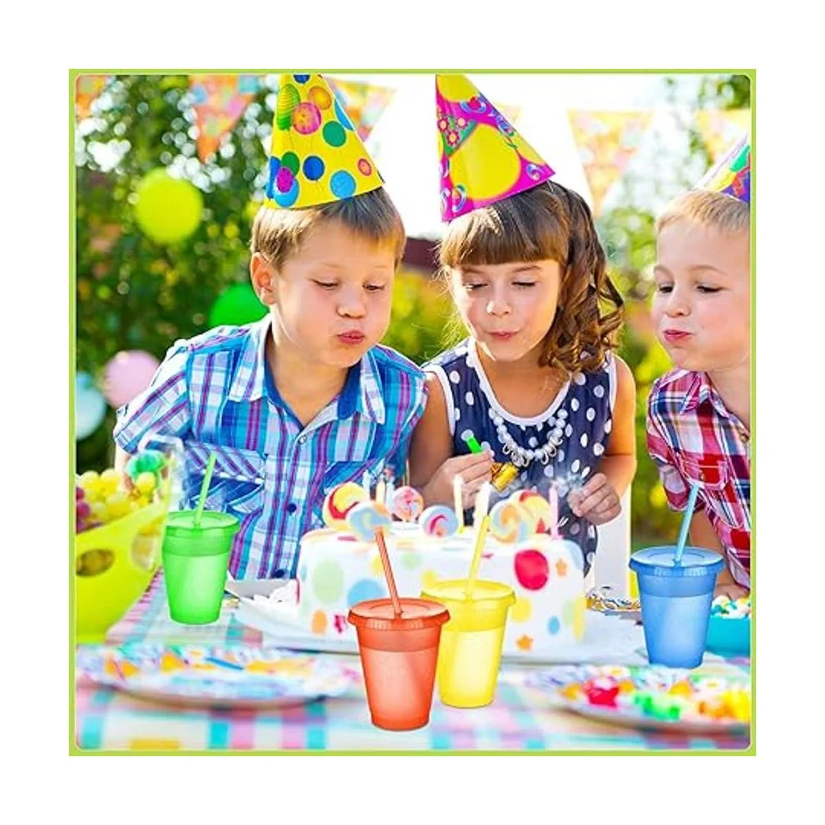 Vasos con pajitas y tapas para niños, vaso con pajita, botella de agua reutilizable, taza de café helado, taza de viaje para adultos, tazas de plástico para fiestas, cumpleaños, 16 onzas colores brillantes, paquete de 15