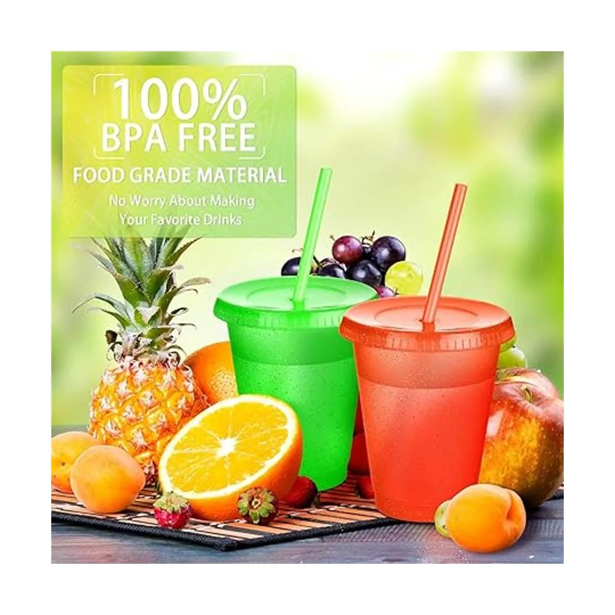 Excelente tamaño y forma: las tazas reutilizables de colores con tapas y pajitas miden aproximadamente 2.4 in de diámetro inferior, 3.9 in de diámetro superior, 4.7 in de altura, cómodo de sostener, adecuado para diferentes edades