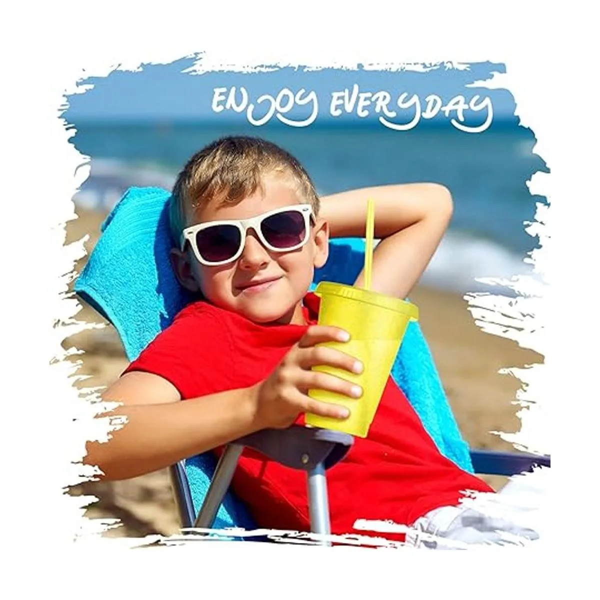 Adecuado para todas las ocasiones: esta taza de viaje de plástico es colorida y brillante, lo que es muy adecuada para vacaciones tropicales, fiestas, barbacoas familiares o viajes al aire libre, puedes recoger tu taza y disfrutar de vacaciones coloridas y verano cálido