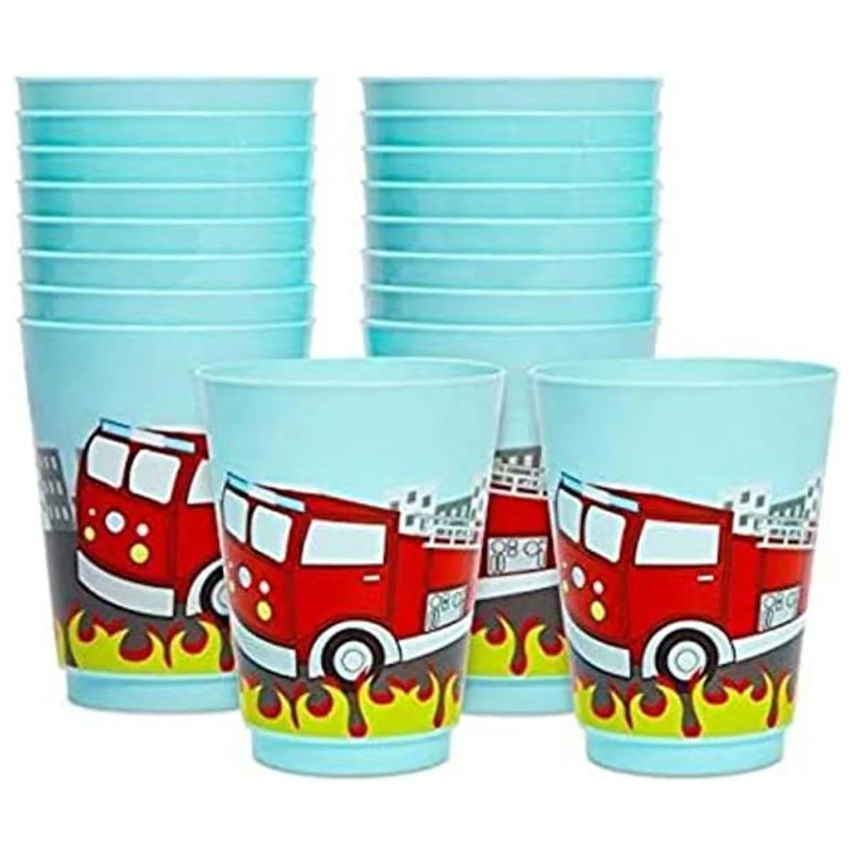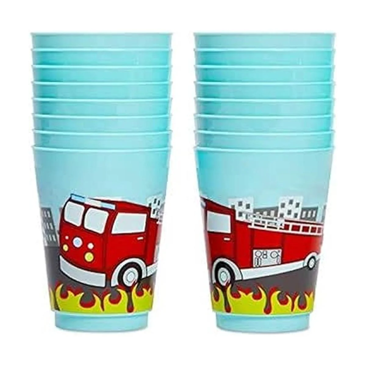 Vasos de plástico de 16 oz, suministros para fiestas de cumpleaños de camiones de bomberos azul, 16 unidades
