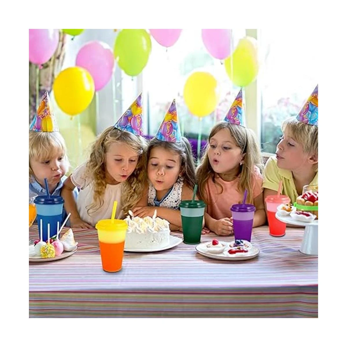 Vasos que cambian de color con tapas y pajitas para niños