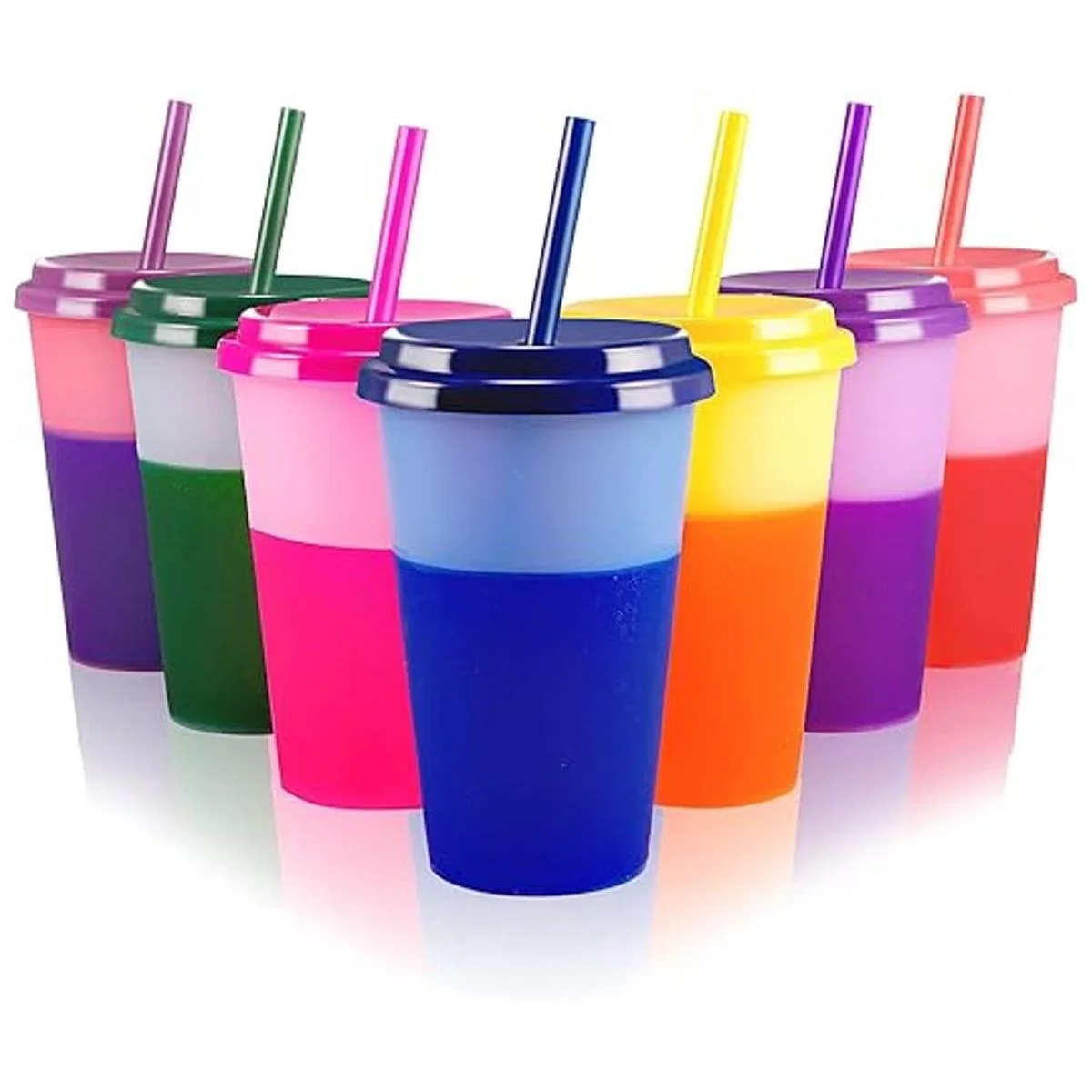Vasos que cambian de color con tapas y pajitas para niños, 7 vasos de plástico reutilizables a granel de 12 onzas para niños