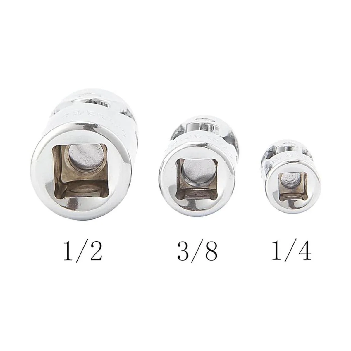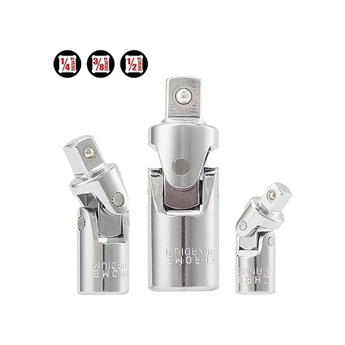 VASTOOLS Adaptador de enchufe universal de junta de 3 piezas, 14, 38 y 12 pulgadas, accionamiento, CRV, juego de junta universal de impacto, sujetadores de acceso en ángulo