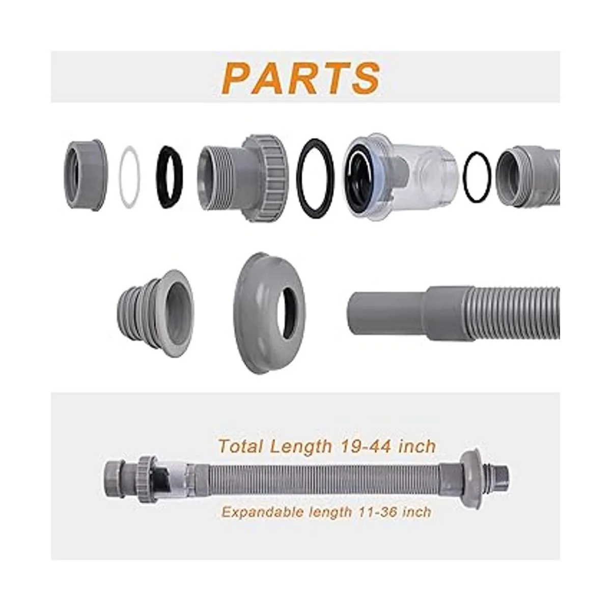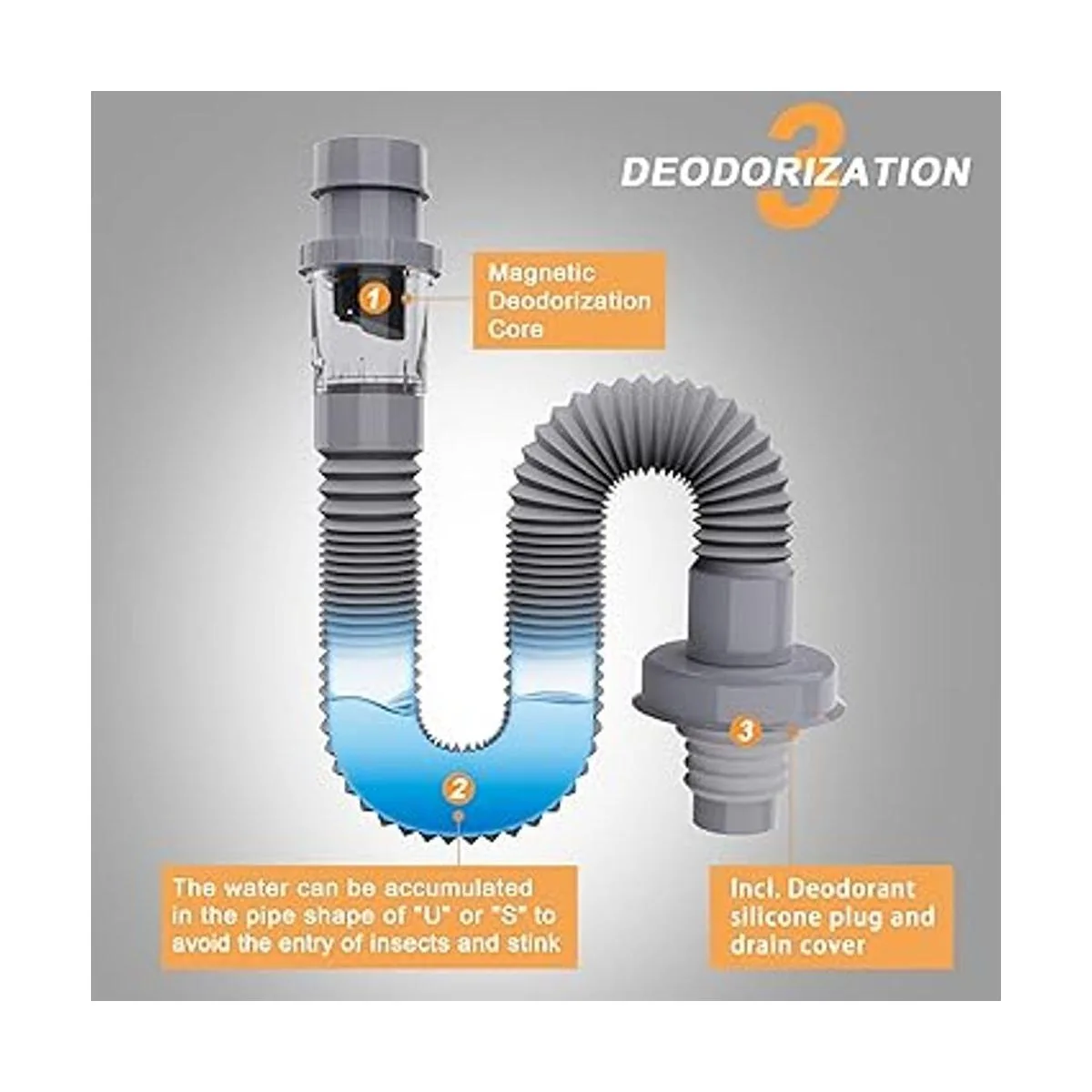Vataler Kit de drenaje flexible antiolor de fregadero de 1 14 para fregadero de baño y cocina, tubo de drenaje flexible universal expandible, longitud total de 19 a 44 pulgadas gris