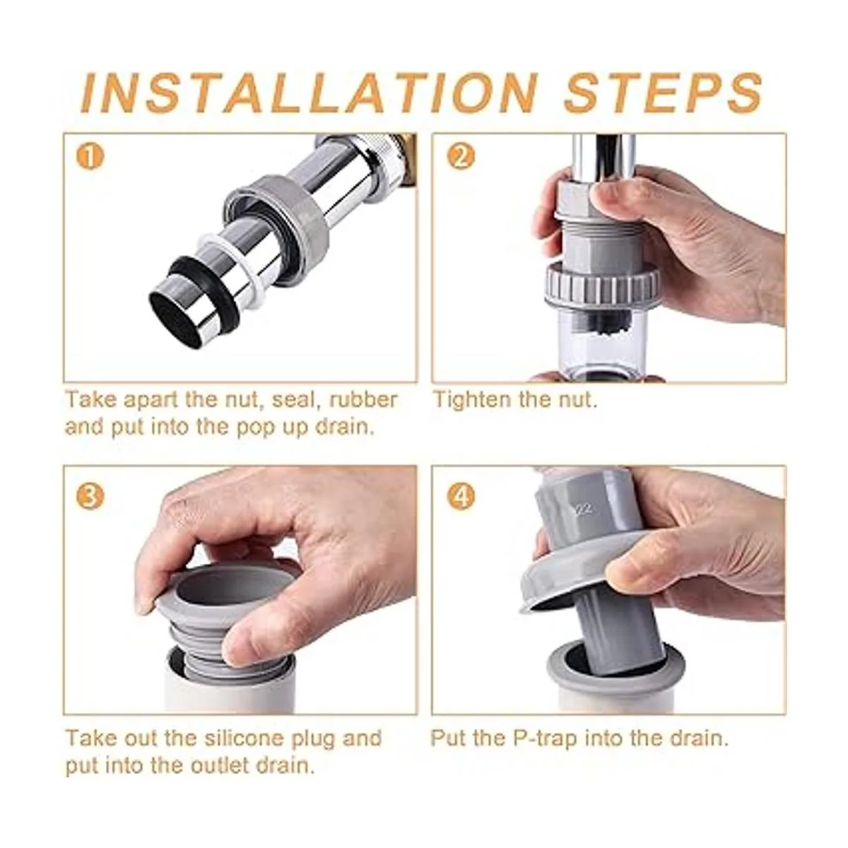 Triple desodorización: El núcleo de desodorización magnético extraíble es de apertura automática y cierre, sin impacto en el flujo de agua y entra en el agua rápidamente. El agua se puede acumular en la forma de tubería de U o S para evitar la entrada de insectos y olor; Incluye: Desodorante tapón de silicona