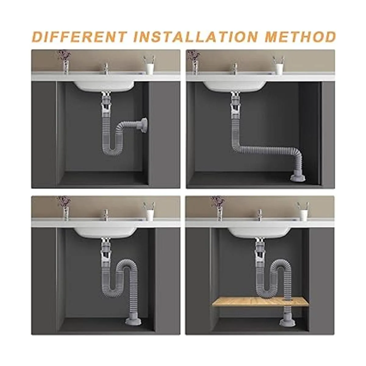 Fácil instalación y especificaciones: solo necesitas 4 pasos para terminar la instalación. Viene con 1 tubo de drenaje flexible para fregadero con tapón de silicona y cubierta de tubo; longitud total del tubo de 19 a 44 pulgadas