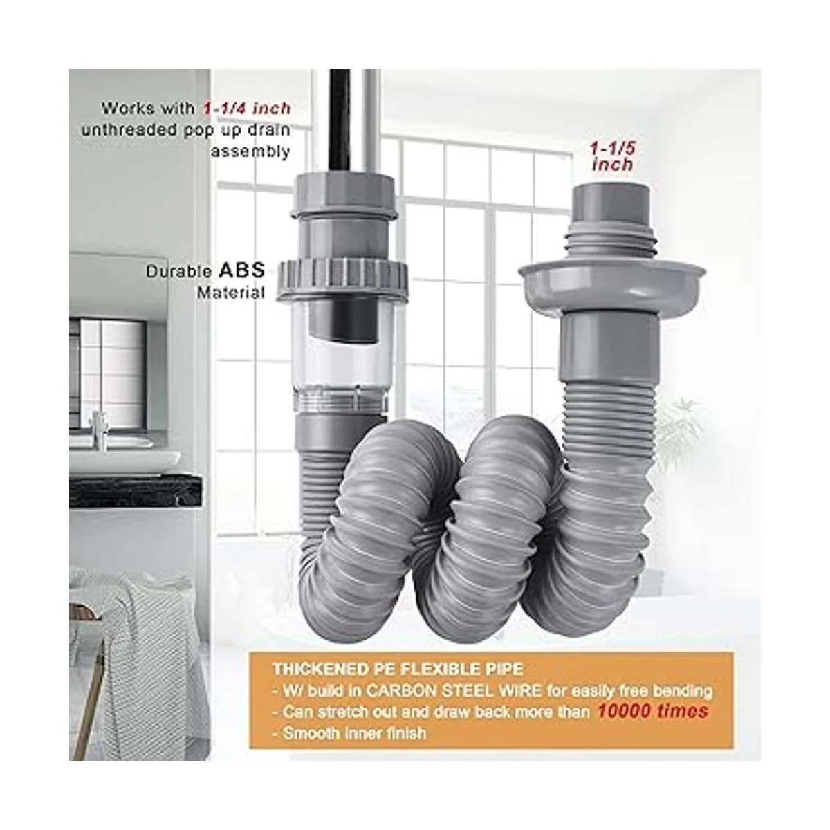 VATALER El tubo de drenaje expandible del fregadero funciona con conjunto de drenaje desplegable sin rosca de 1.260 in; fabricado con ABS de alta calidad y plástico PE para garantizar la durabilidad y extensibilidad del tubo.