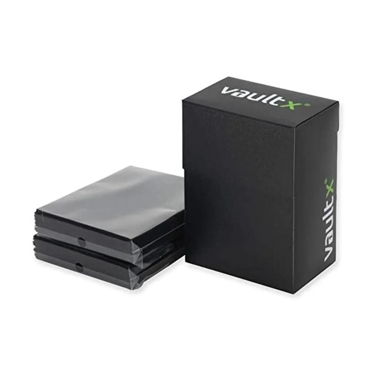 Vault X Caja de cubierta y 100 fundas para tarjetas de tamaño mediano para tarjetas de 70 a 80 fundas de PVC, para TCG mediano 100