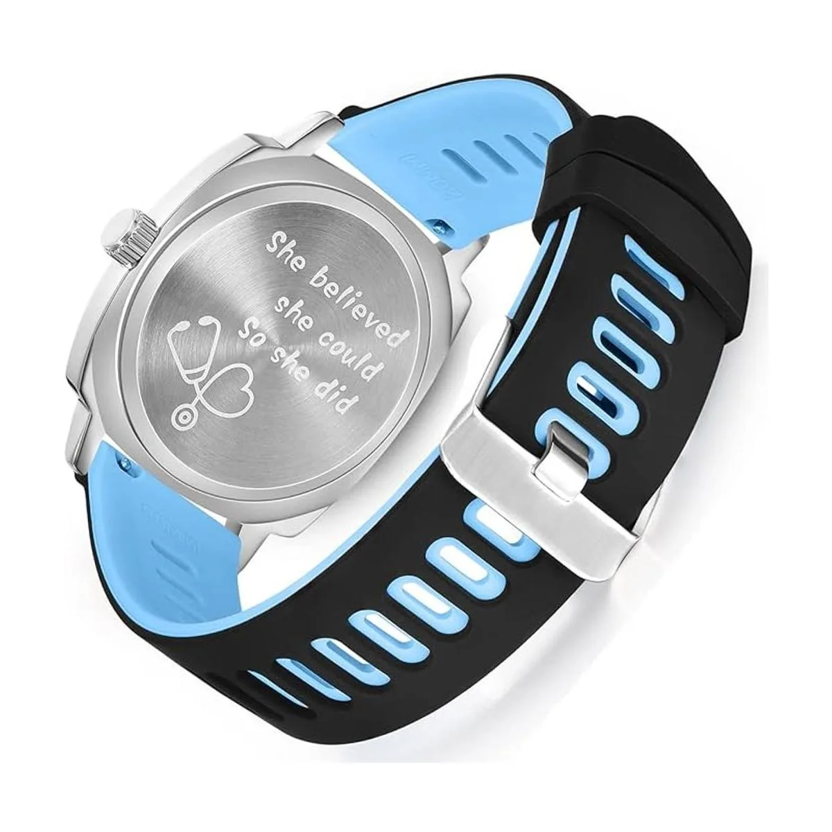 Diseño especial para profesionales médicos: es un reloj especial de fácil lectura para enfermeras, médicos, estudiantes de medicina. Correa de silicona suave, fácil de limpiar. Resistencia al agua hasta 98.4 ft.