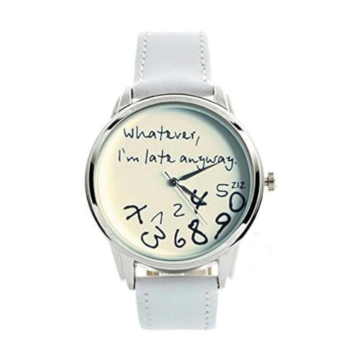 Vavna Whatever, Im Late Anyway Print Leather Reloj de cuarzo plateado para mujer y hombre