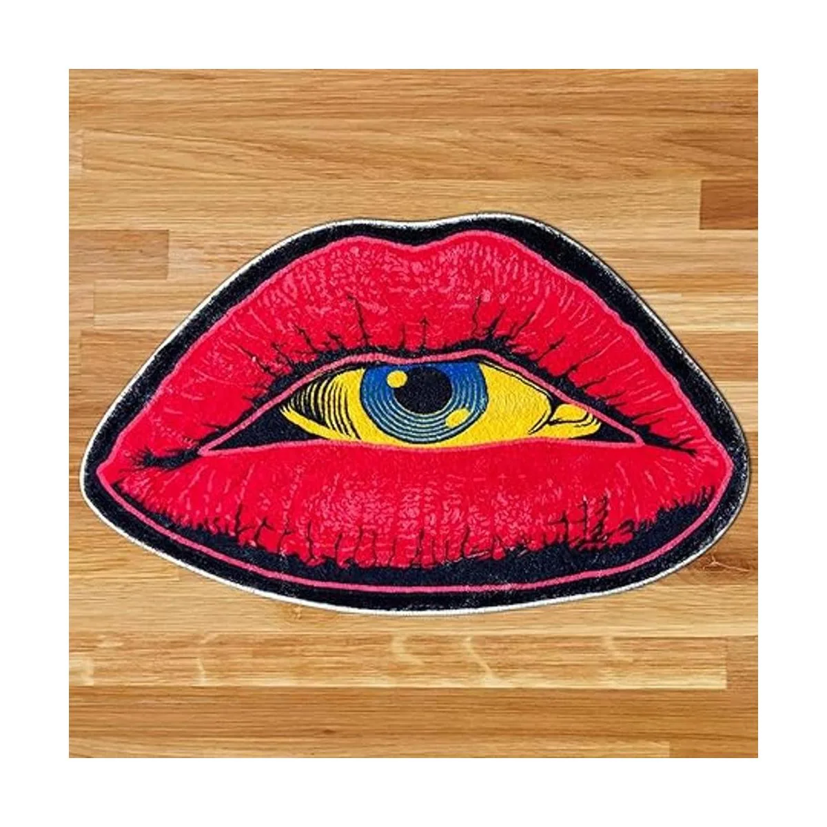VBFGRT Interesantes alfombras de felpa con forma de ojo de diablo y labios rojos encantadores para dormitorio, cómoda decoración del hogar, tapete de puerta de dibujos animados absorbente para baño, alfombra de baño interior de cocina, tapete antideslizante, 31.5 x 19.5 pulgadas