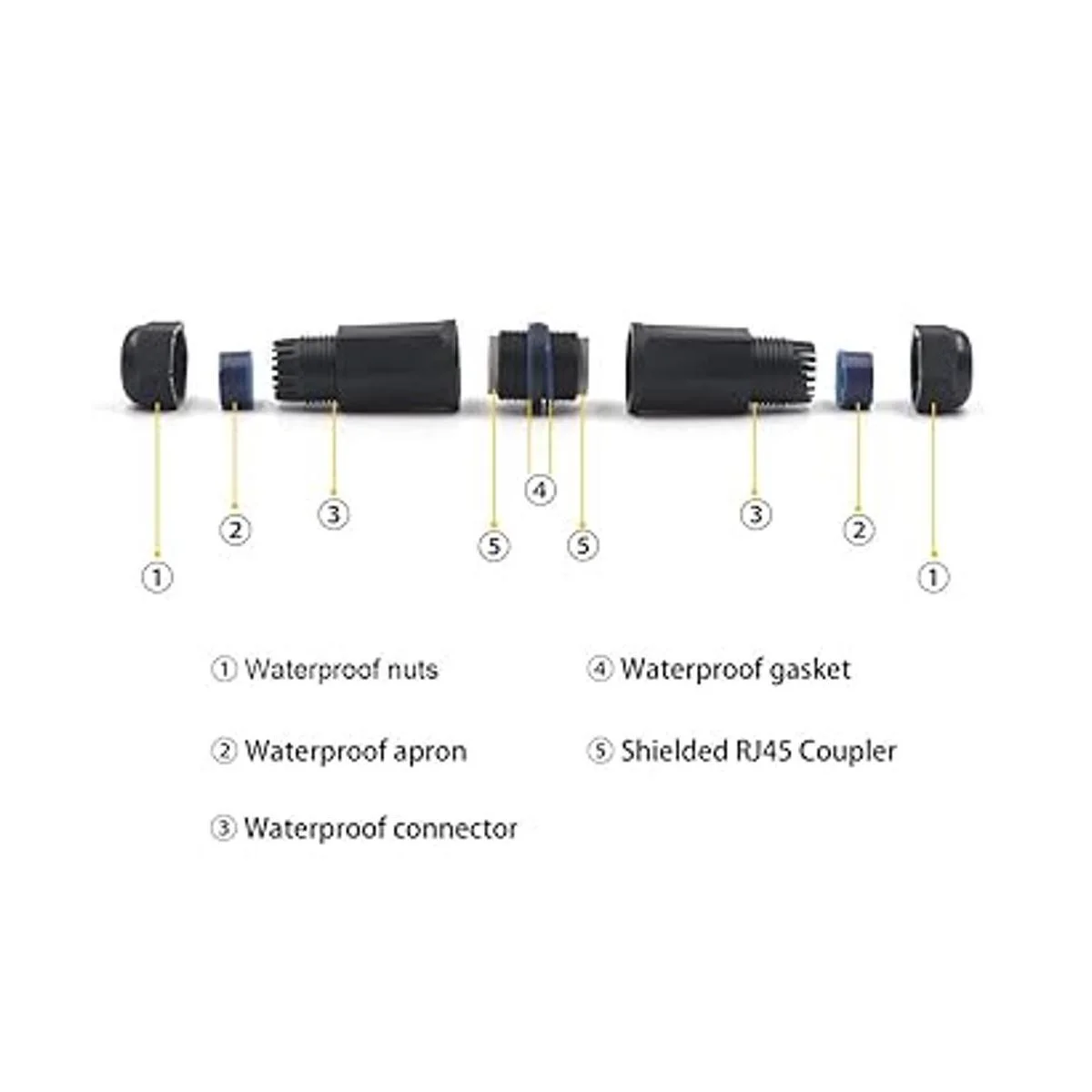 Fácil de instalar: acoplador impermeable RJ45 hembra a hembra, simplemente conecta un cable de conexión CAT6/CAT5E/CAT5 en cada extremo y atornilla juntos.