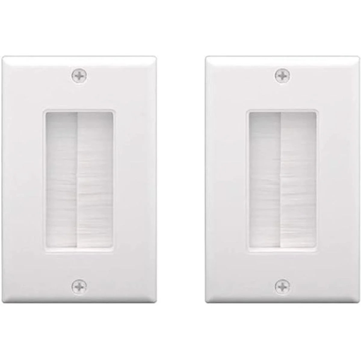 VCE Placa de pared de un solo cepillo para cables de paso, correa de acceso de cable de una sola banda, enchufe de pared para HDTV, sistemas de cine en casa, color blanco paquete de 2