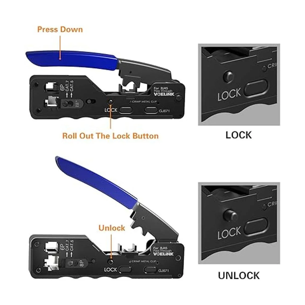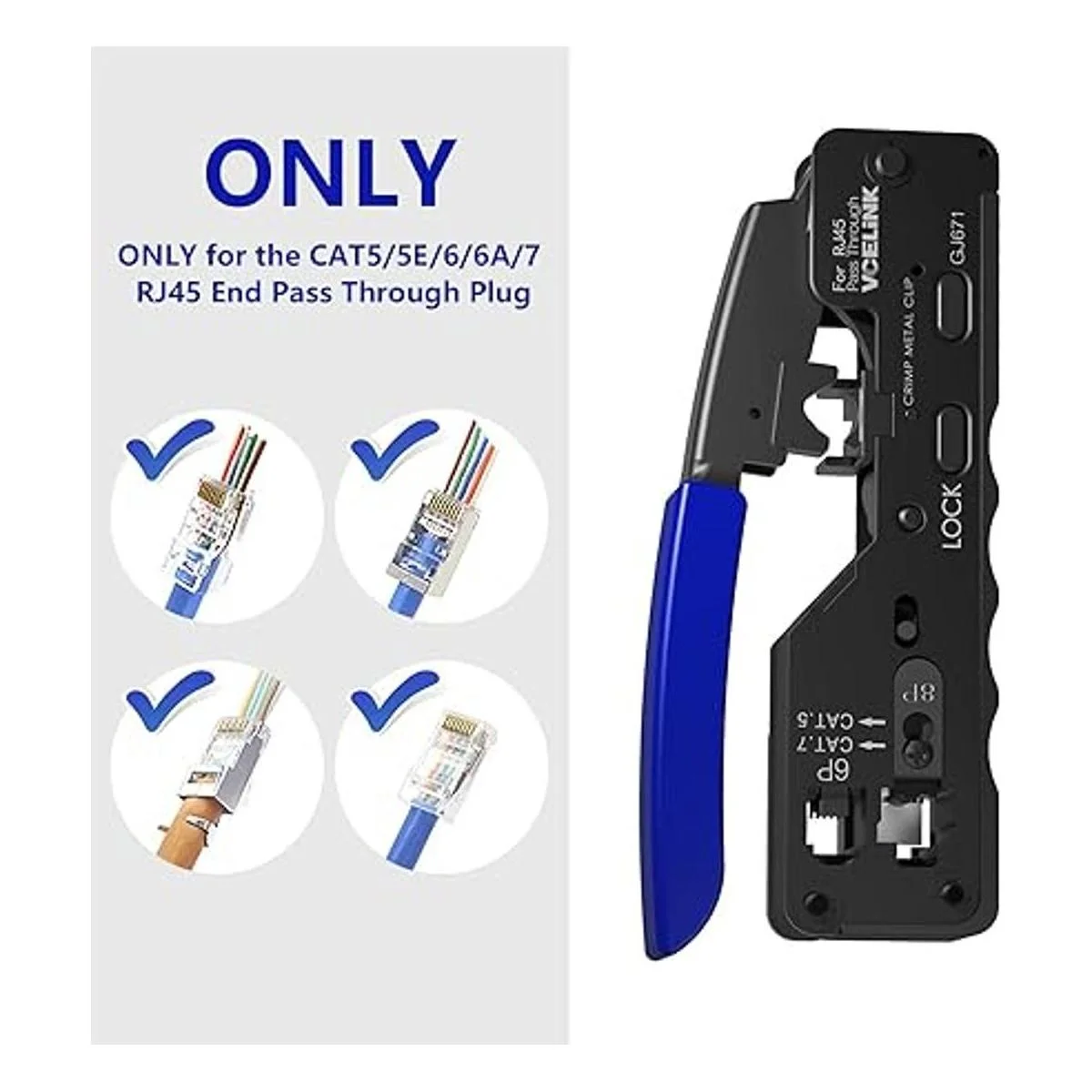 VCELINK Herramienta de crimpado Ethernet RJ45 para conectores modulares Cat7 Cat6A Cat6 Cat5E Cat5 Cat5, herramienta de crimpado de red, cortador de alambre, todo en uno
