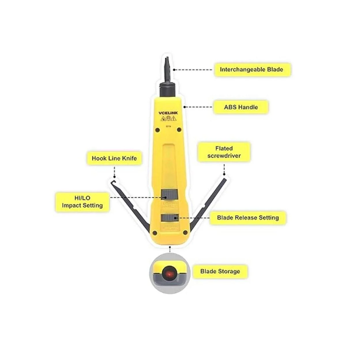 VCELINK Herramienta de impacto perforadora con 110 y 66 cuchillas, kit de herramientas de impacto de perforación de alambre de red, herramientas de inserción de terminales de impacto Keystone, cable de red CAT6CAT5CAT3 Stripper