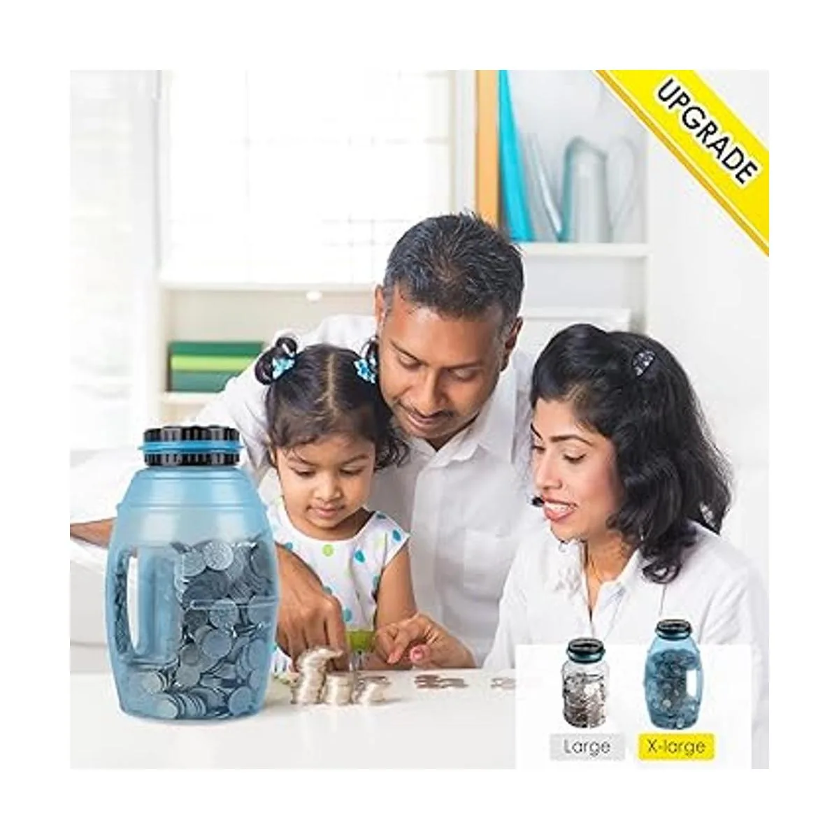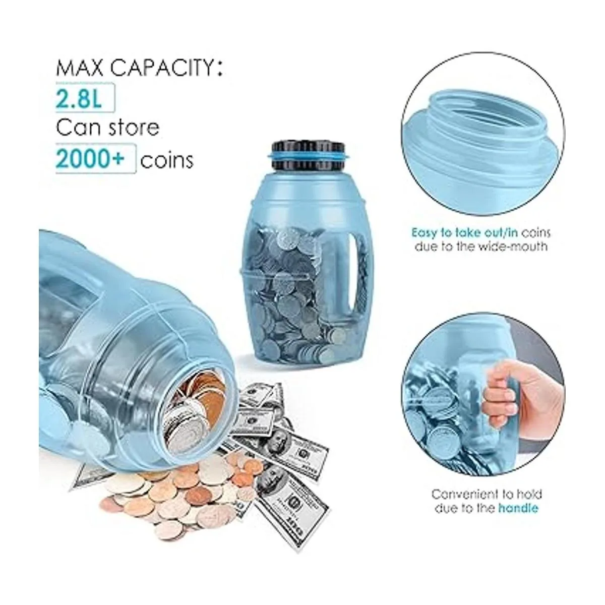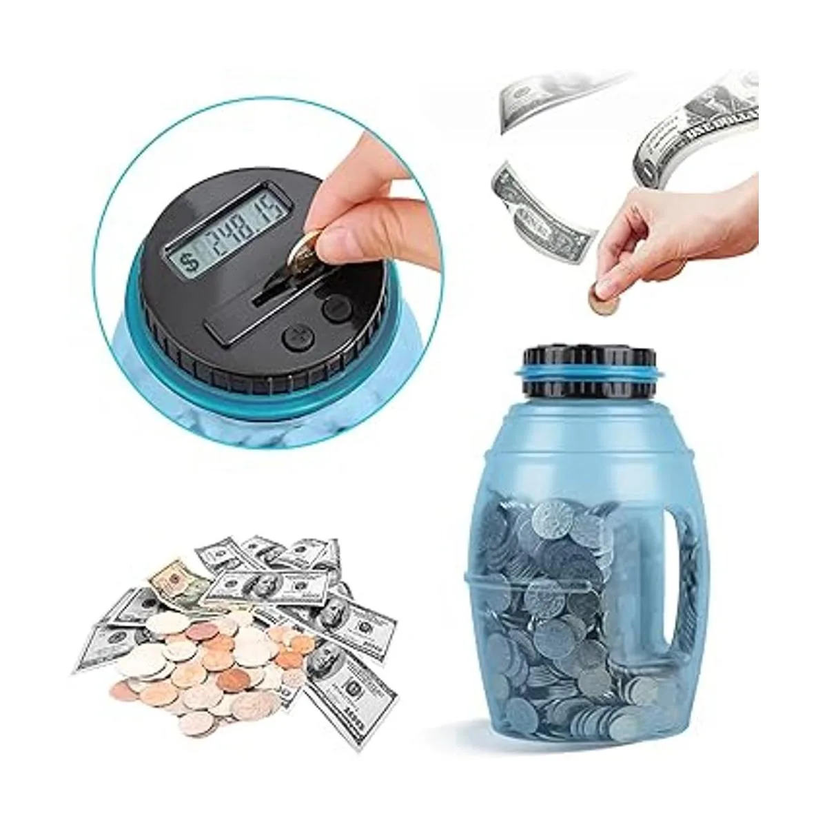 Vcertcpl Alcancía grande para adultos, caja digital de conteo de monedas con contador LCD, capacidad de 2.8 L para adultos, diseño para todas las monedas de EE. UU. azul 2, XL