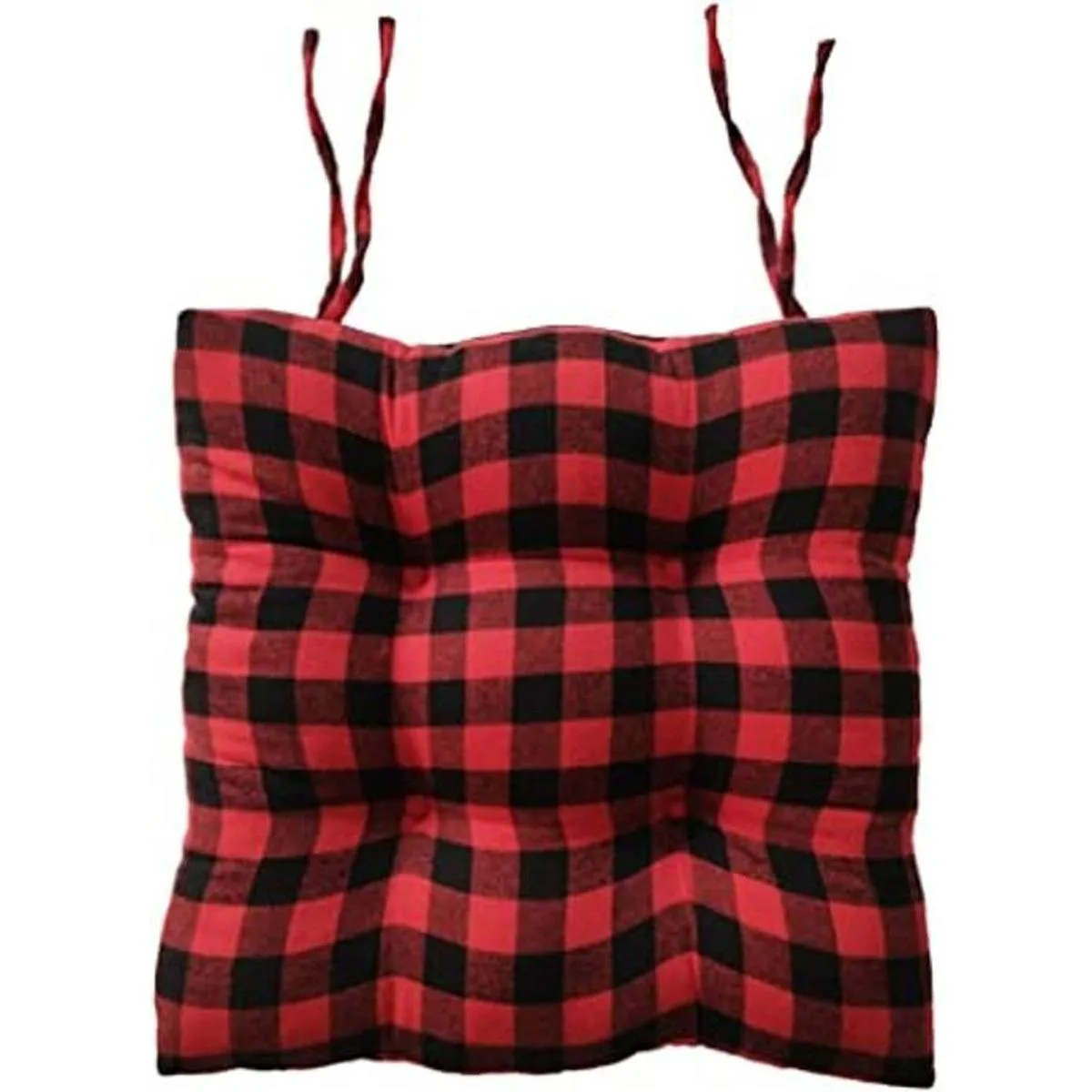 vctops Farmhouse Buffalo Almohadillas para sillas con lazos rojos y negros, cojines para sillas de comedor, suaves, cómodas y cuadradas rojo A, 16 x 16 pulgadas