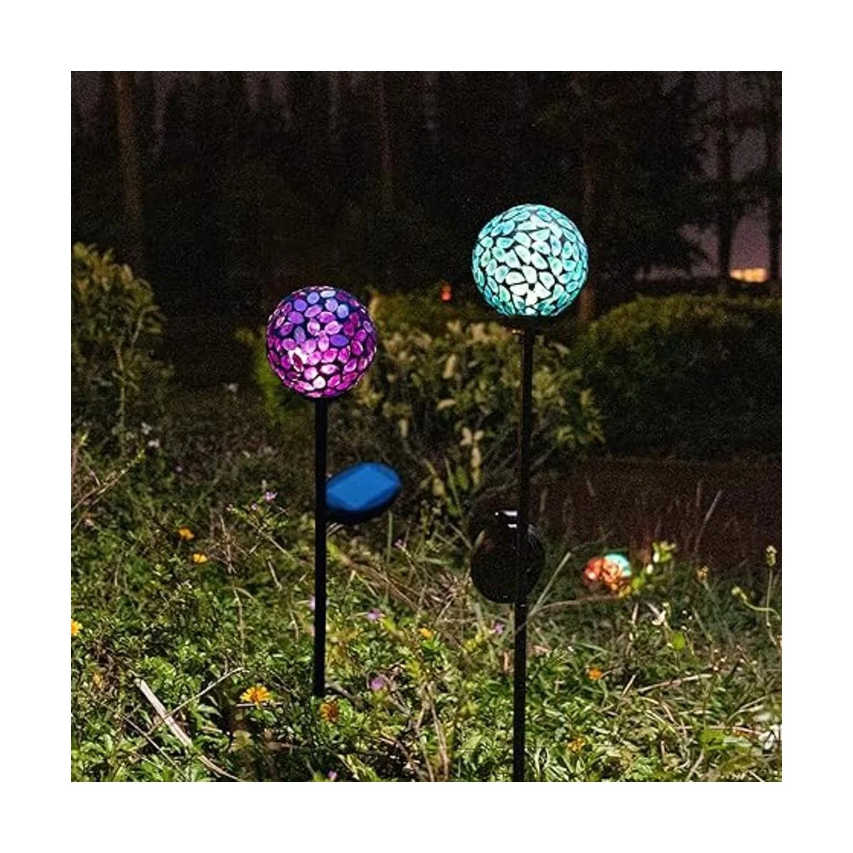 Diseño de globo de mosaico: la lámpara solar de jardín de mosaico adopta un diseño de fragmento de vidrio de pétalos de flores hecho a mano, la luz solar de bola hace que tu jardín sea más hermoso y elegante. Elección ideal de lámpara decorativa para exteriores
