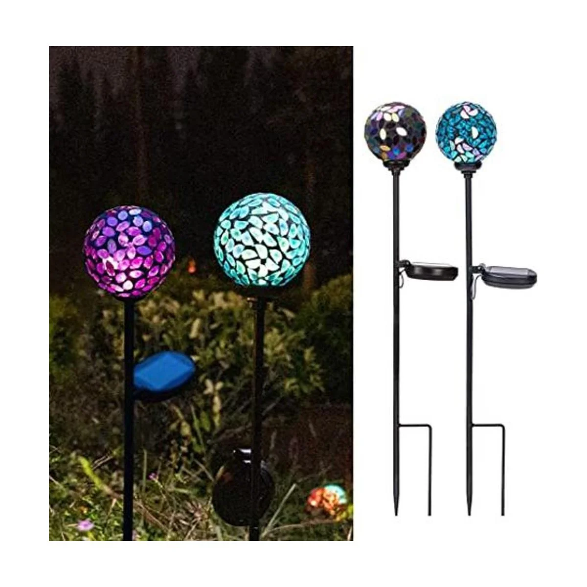 VCUTEKA Luces decorativas solares de jardín para exteriores, luz solar de mosaico, impermeable, luz LED para estaca de camino, para paisaje, patio, terraza, decoración de pasarela, paquete de 2 unidades azul y morado