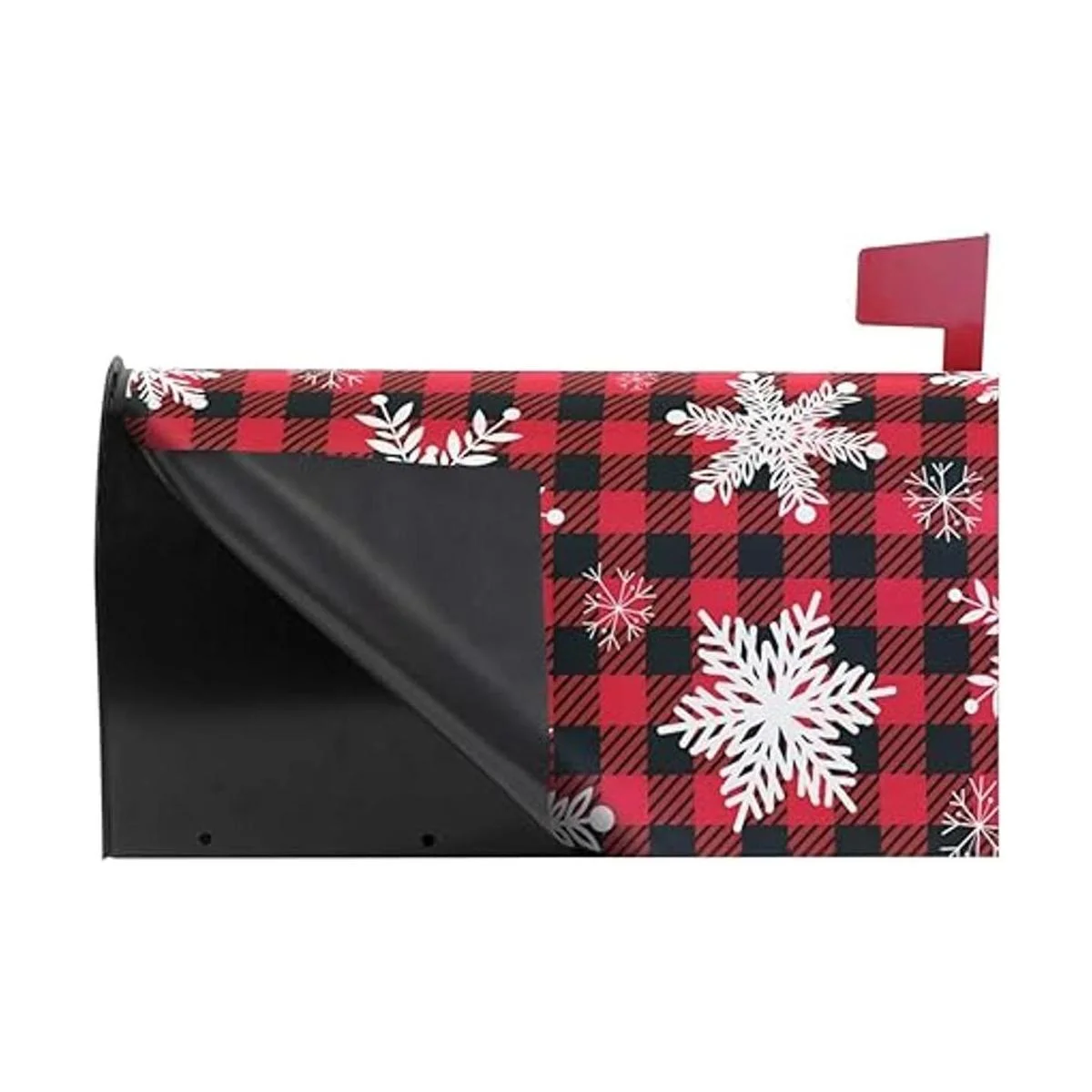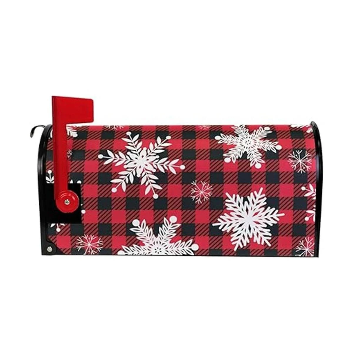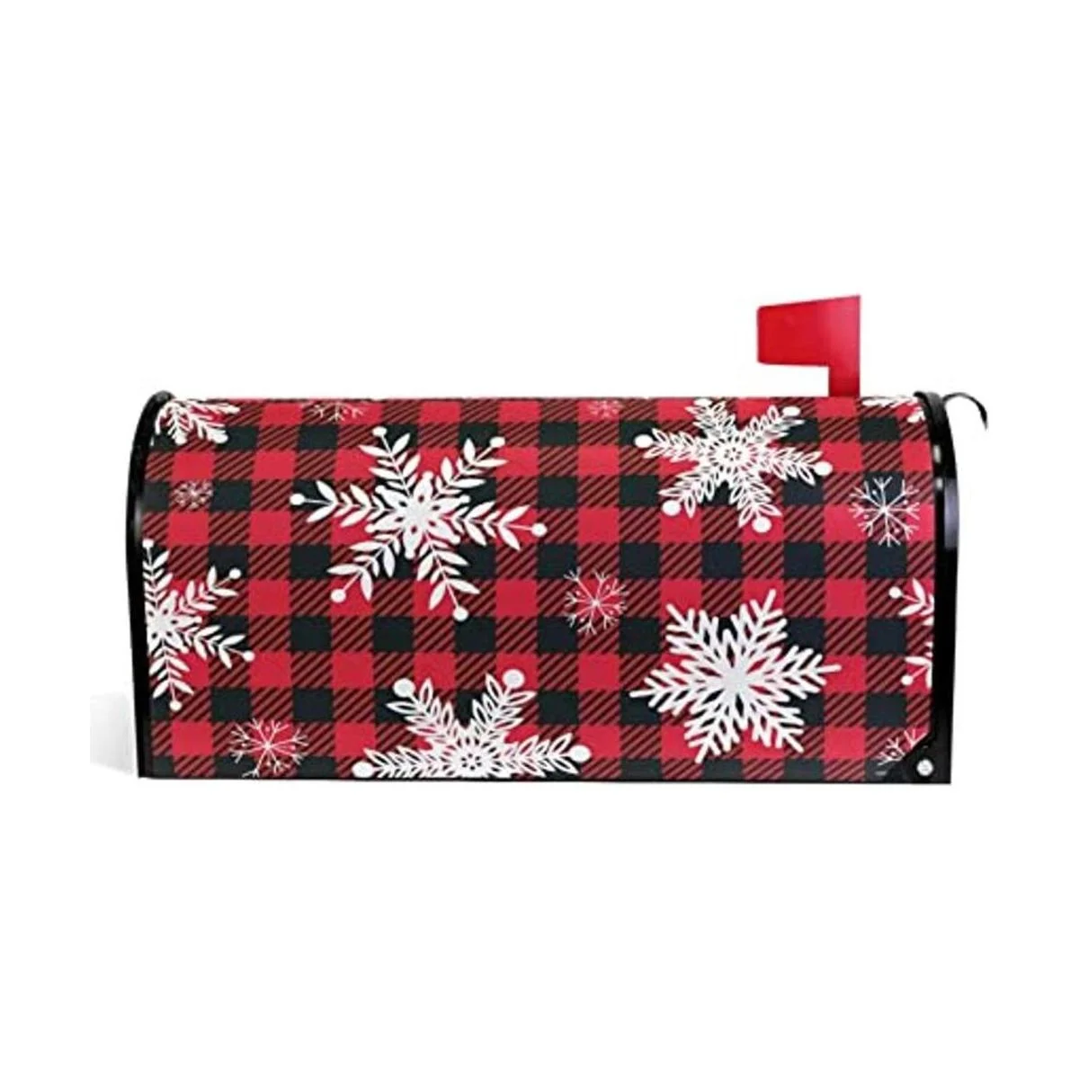 Vdsrup Buffalo Plaid Cubiertas magnéticas para buzón de Navidad de invierno, diseño de copos de nieve, color rojo, decoración de jardín, tamaño estándar, 18.0 x 21.2 in