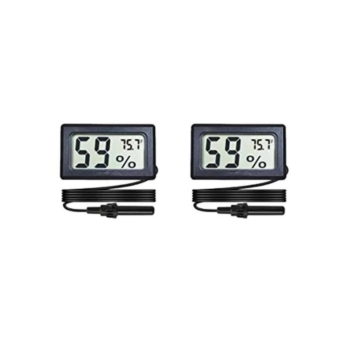 Veanic Paquete de 2 mini termómetro digital higrómetro con sonda, pantalla LCD, medidor de humedad de temperatura Fahrenheit para incubadora, terrario de plantas de reptiles, humidor, estuche de guitarra, invernadero