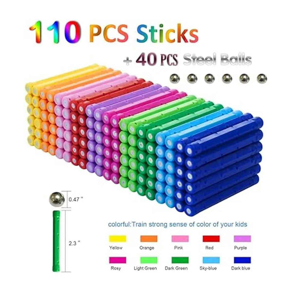 El mejor juguete educativo para niños: este juego de juguetes de construcción magnética está hecho de material de polipropileno respetuoso con el medio ambiente, inodoro que no es tóxico, sin BPA, sin sustancias nocivas. Contiene 110 varillas magnéticas y 40 bolas de acero no magnéticas. Diseñado para soportar juegos ásperos y uso duradero