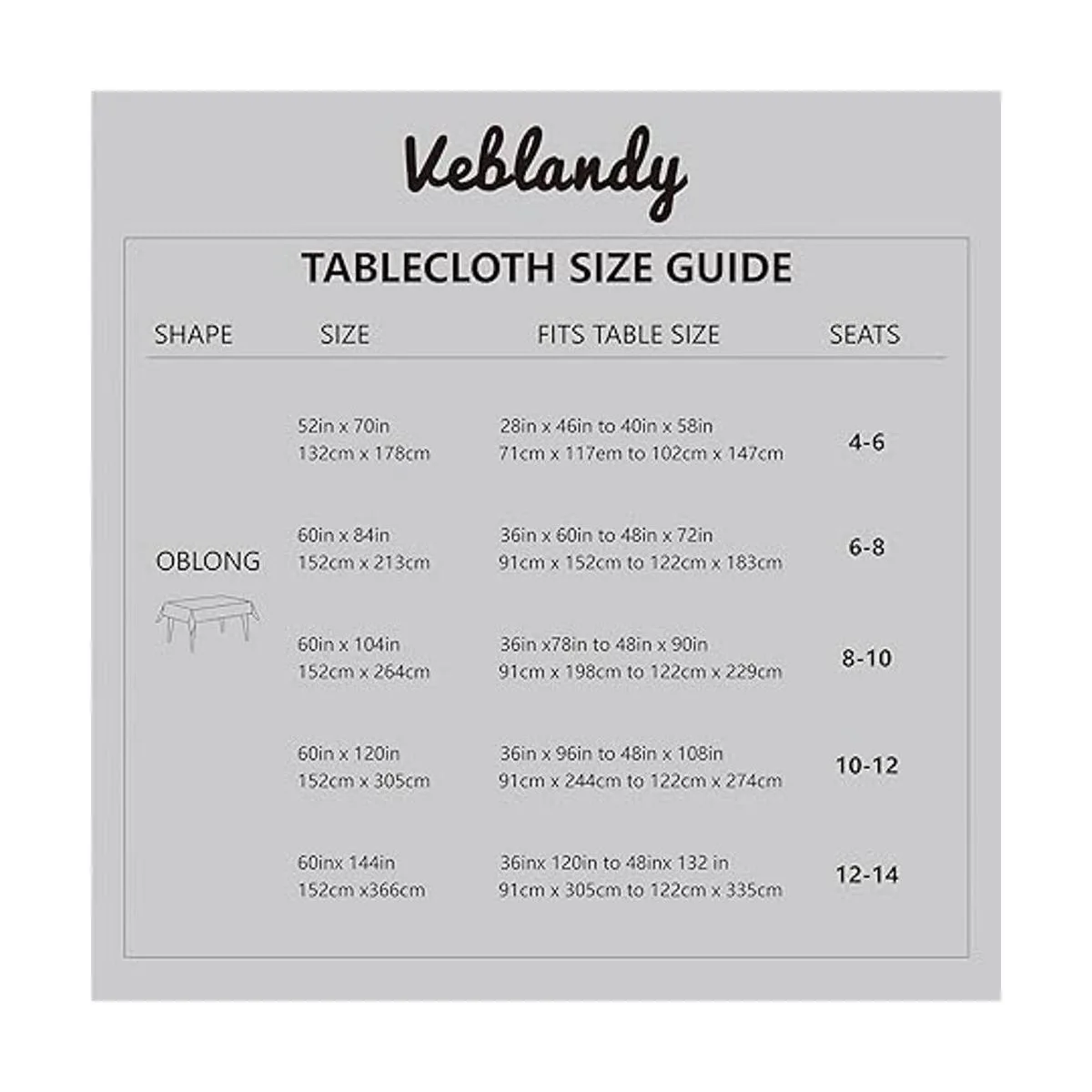 Tela de alta calidad: los manteles Veblandy están hechos de tela de lino sólido de alta calidad. Mantiene la superficie de tu mesa protegida de derrames y arañazos. No contiene productos químicos nocivos y no tiene olor penetrante, perfecto para decorar tus mesas. Protector de mesa rectangular de 52 x 70 pulgadas. Multiuso para mesas rectangulares de 4 a 6 pies.