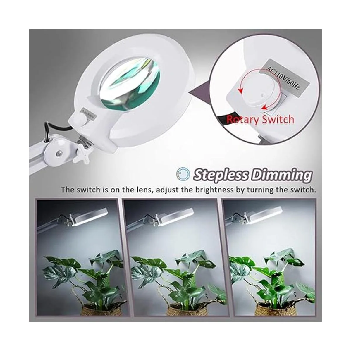 Luz LED regulable continuamente: lupa LED de alto brillo de 1500 lúmenes con diferentes ajustes de brillo. Simplemente gira el botón de encendido para ajustar el nivel de brillo. Encuentra la luz más adecuada para tus necesidades, lo que te permite ver áreas oscuras de objetos. Te ayuda a trabajar con detalles más precisos, perfecto para dermatólogos, esteticistas, dentistas, joyeros, artistas del tatuaje, etc.