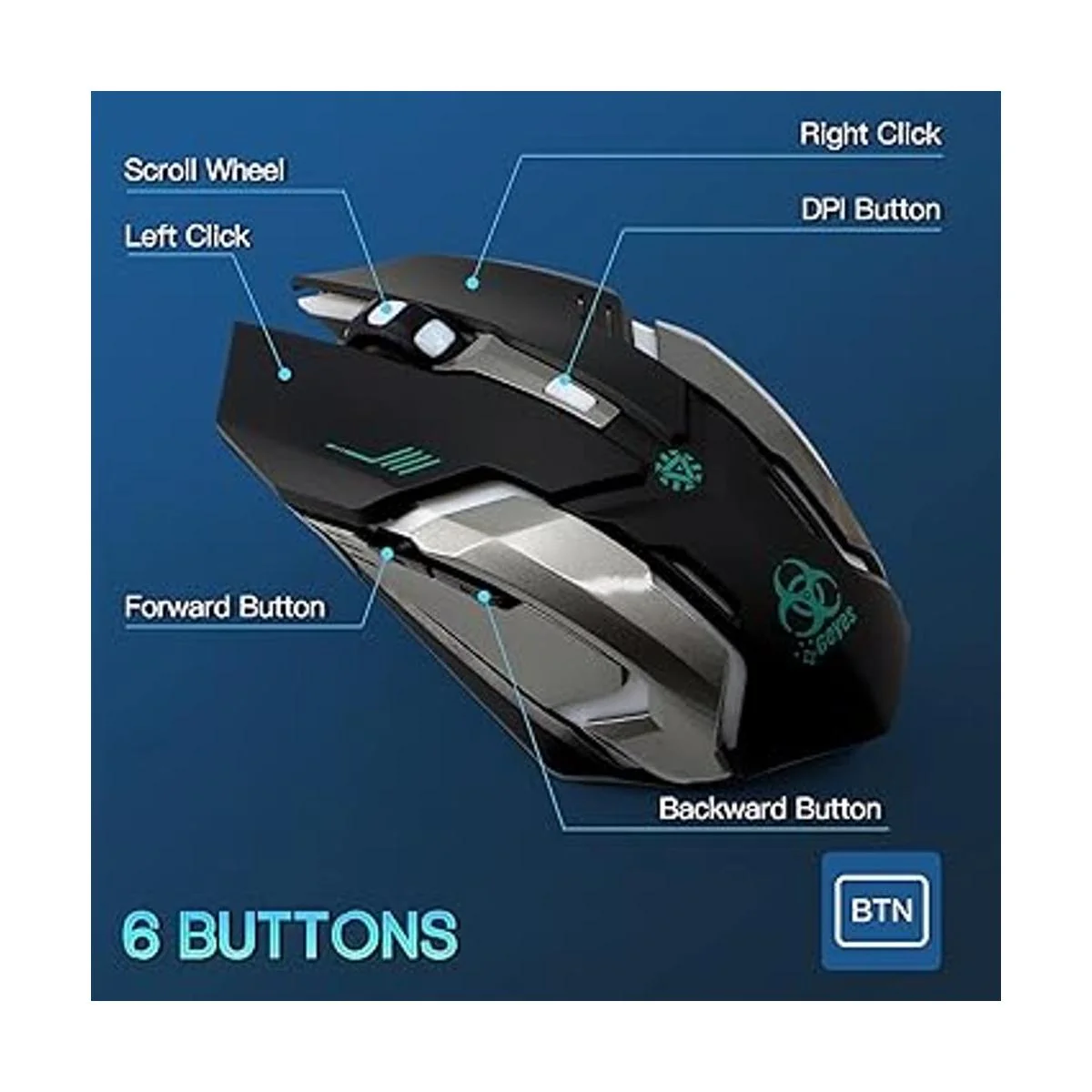 Clic insonorizado y diseño ergonómico Tanto las teclas izquierda como derecha son silenciosas. Di adiós a los molestos ruidos cuando trabajas en casa o juegas juegos. Al mismo tiempo, su diseño simétrico y aerodinámico y materiales cómodos se adaptan perfectamente a tus manos y naturalmente, reduciendo en gran medida la fatiga de la mano después de un uso a largo plazo. Además, proporcionaremos cable de carga y USB en la caja de regalo del ratón