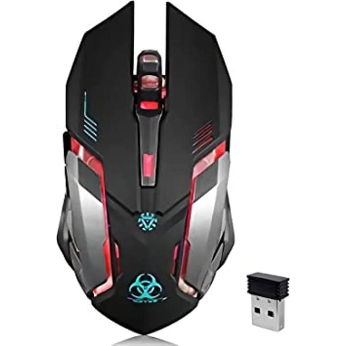 VEGCOO C8 Ratón inalámbrico recargable inalámbrico con luces LED coloridas y batería de litio de 3 niveles DPI 400 mAh para laptop y computadora negro
