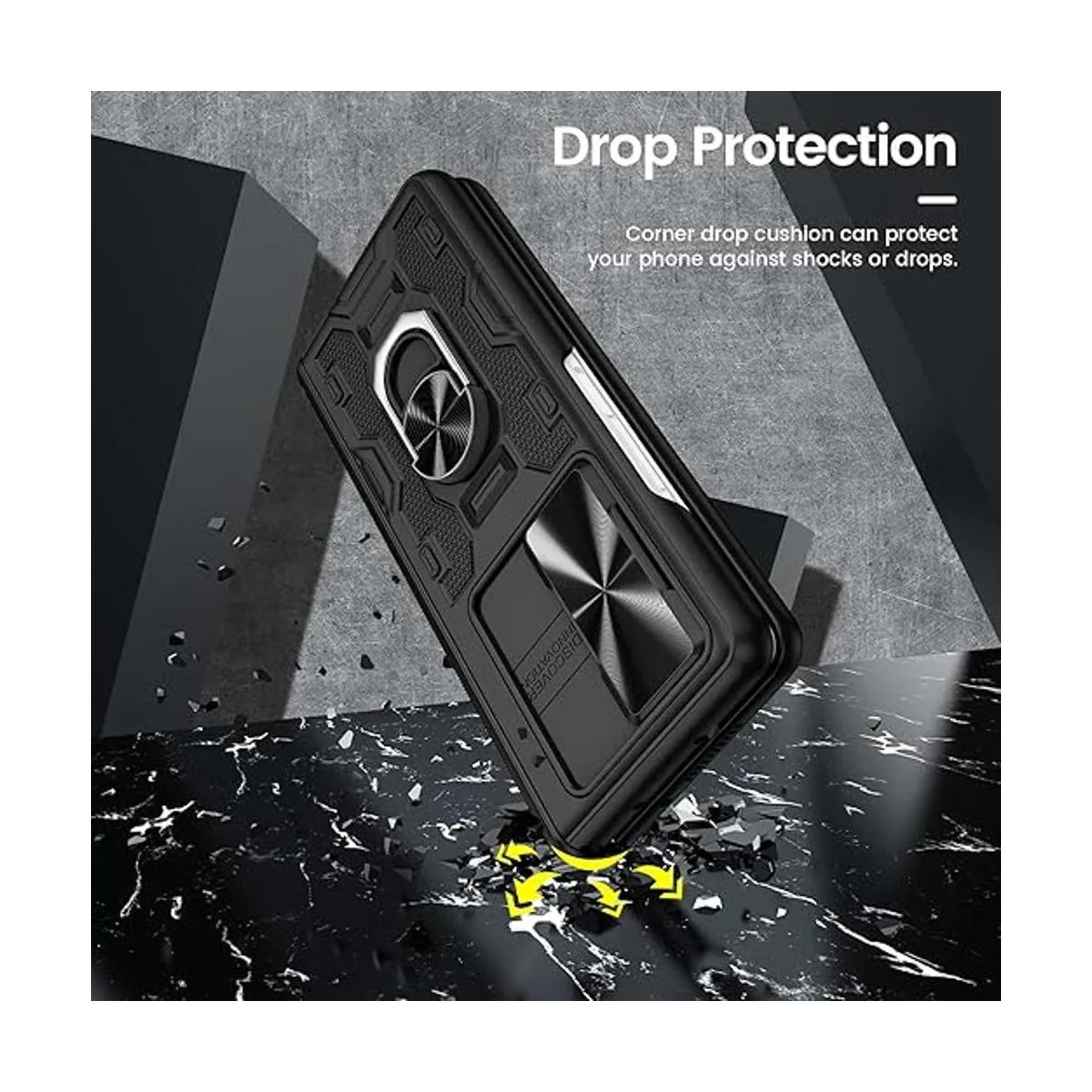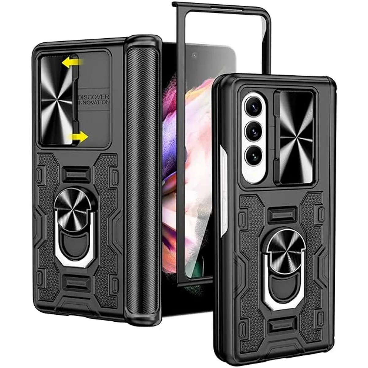 VEGO Funda para Galaxy Z Fold 3 con cubierta de cámara, funda de protección de bisagra con protector de pantalla frontal y anillo de 360 con soporte magnético de armadura para Samsung Galaxy Z Fold 3, color negro medianoche