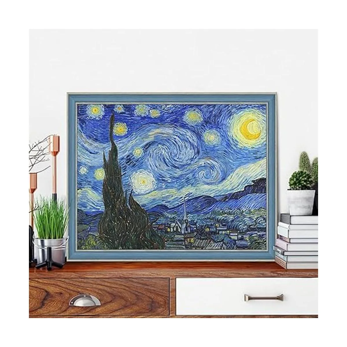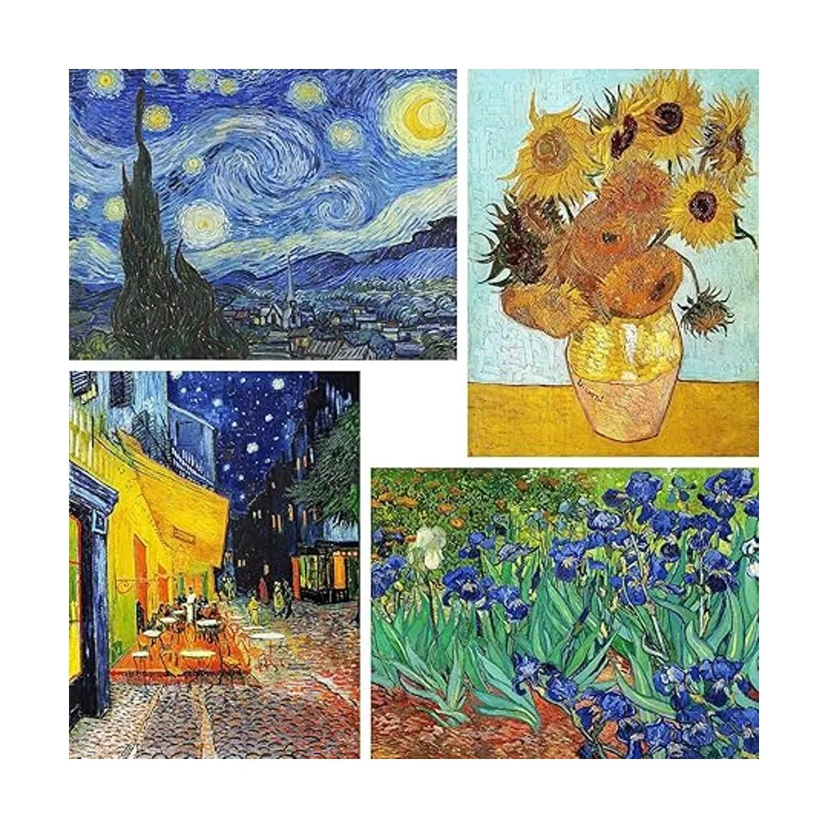 VeGuude Pintura por números para adultos y niños principiantes, paquete de 4 pinturas de noche estrellada Van Gogh por números en lienzo, sin marco, pintura al óleo, pinturas acrílicas, regalo de decoración de pared para el hogar, 12 x 16 pulgadas