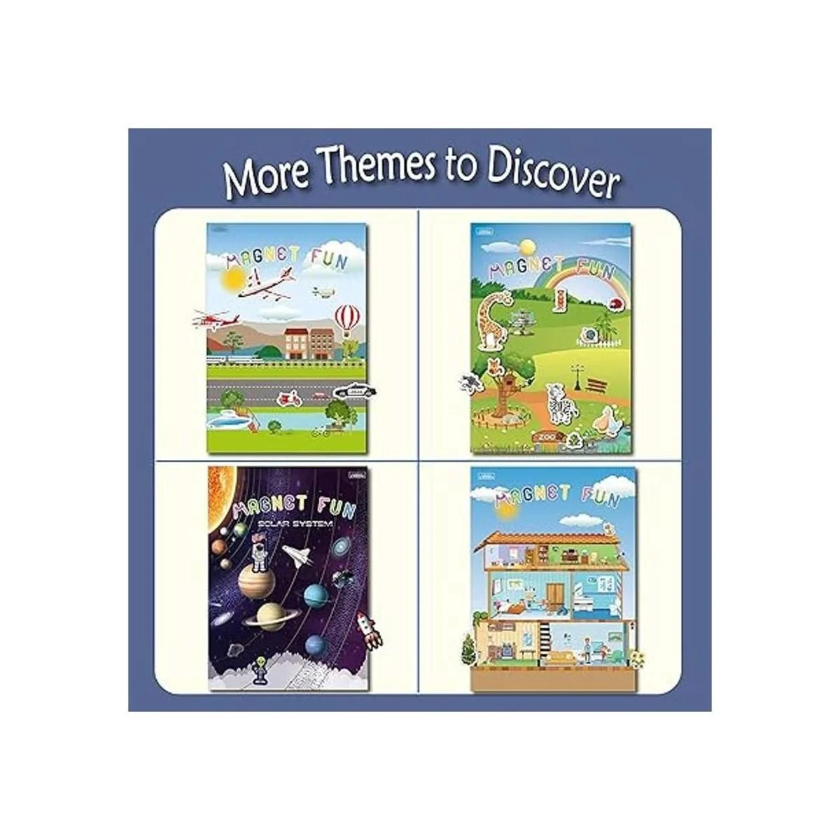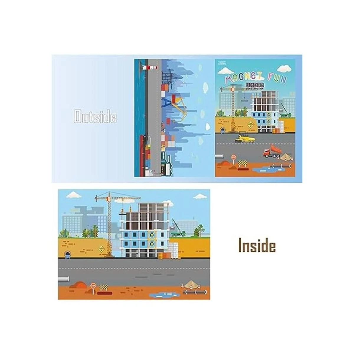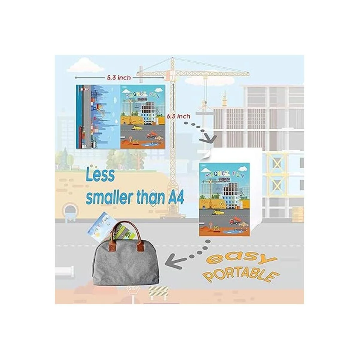 Portátil y elegante: abierto, proporciona 2 divertidas escenas de juego con carretera, suburbios, orilla del mar, aeropuerto y múltiples objetos, con las que los niños pueden ejercitar su imaginación durante horas. Cerrado, es un folleto delgado para que los niños puedan llevarlos fácilmente en el viaje, los imanes permanecerán en el tablero de forma segura.