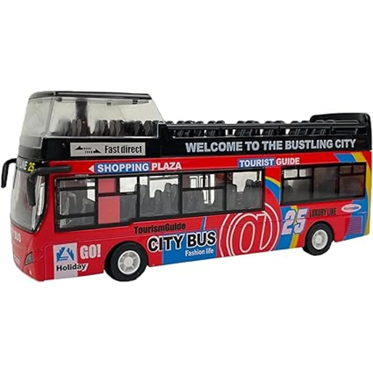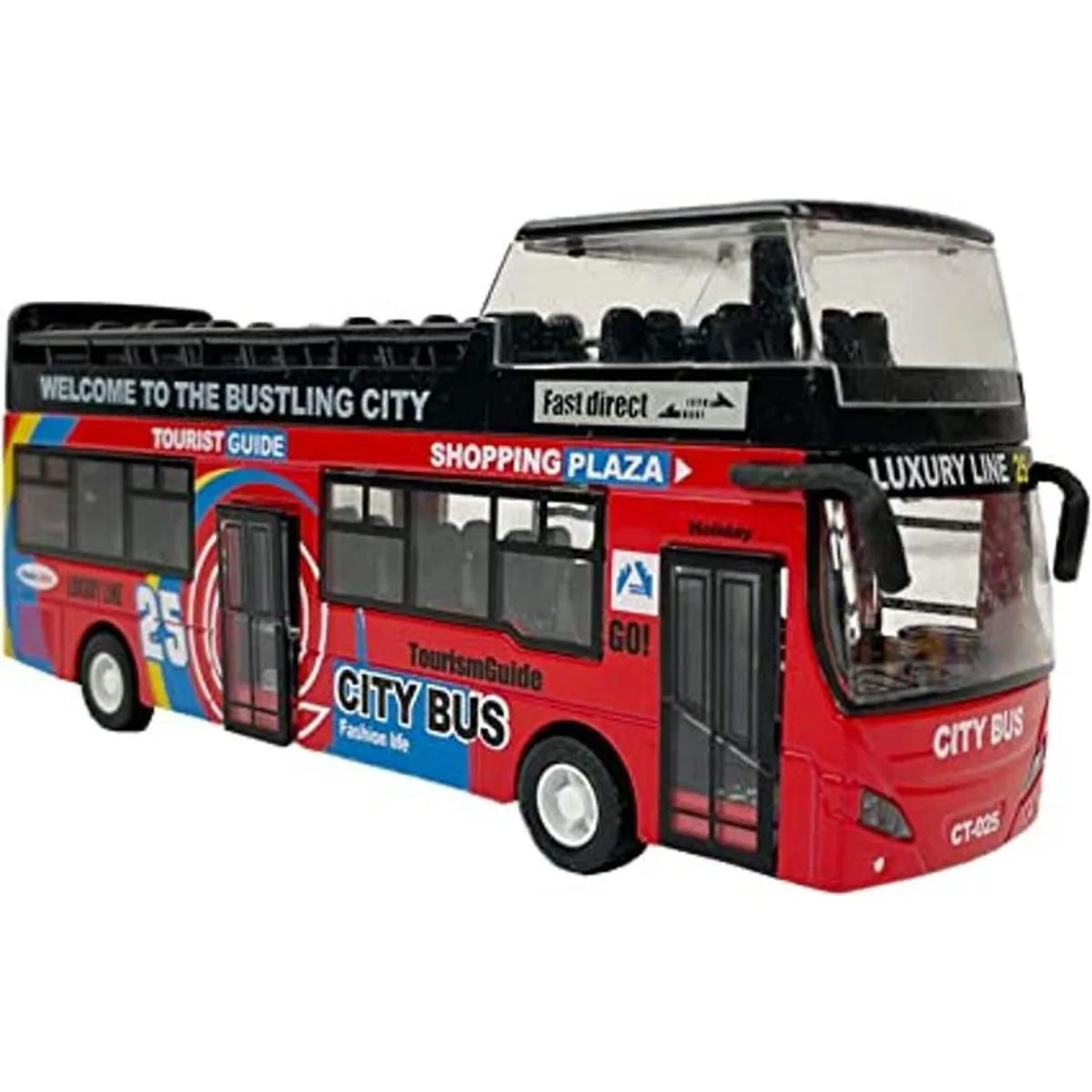 Vehículos de juguete de viaje turístico a escala 132 Mini vehículo turístico de doble piso abierto modelo de autobús Juguetes de acción con luces y música rojo
