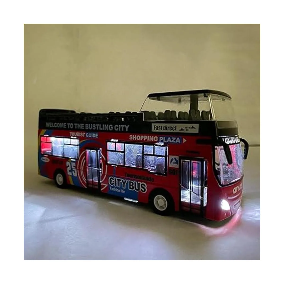 Presiona ligeramente hacia abajo al bus para activar los efectos de luz y sonido.