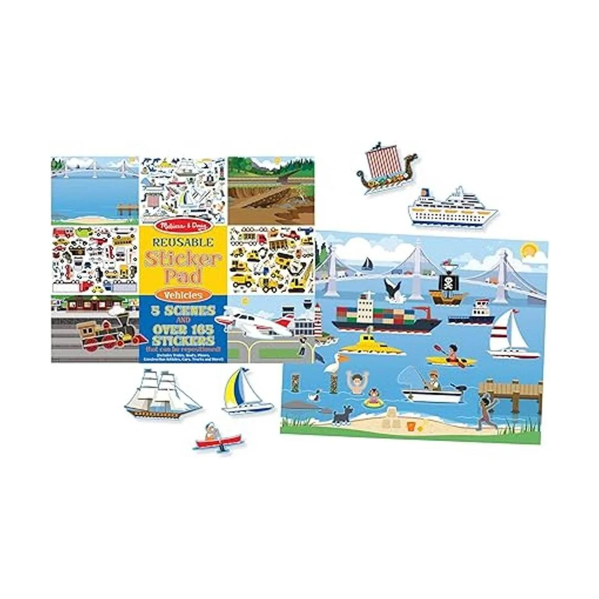 Almohadilla adhesiva reutilizable extragrande: la almohadilla adhesiva reutilizable Melissa Doug para vehículos incluye 5 escenas coloridas y más de 165 calcomanías reposicionables.