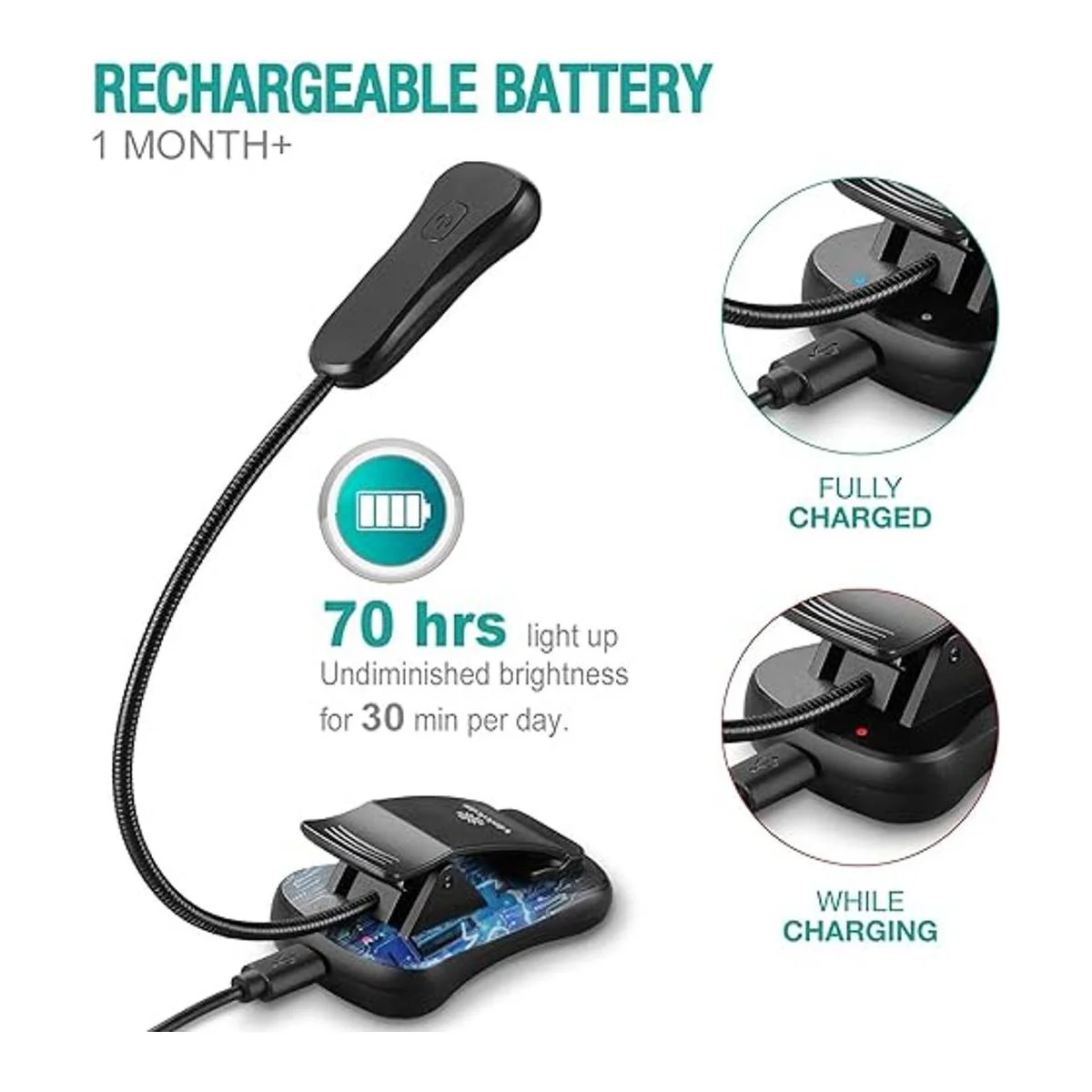 Vekkia Lámpara de lectura recargable, con clip, para leer en la cama. 3 tipos de brillo, 3 temperaturas de color, peso ligero de 2.1 oz, 70 horas de lectura inalámbrica. Perfecta para lectores ávidos y niños.