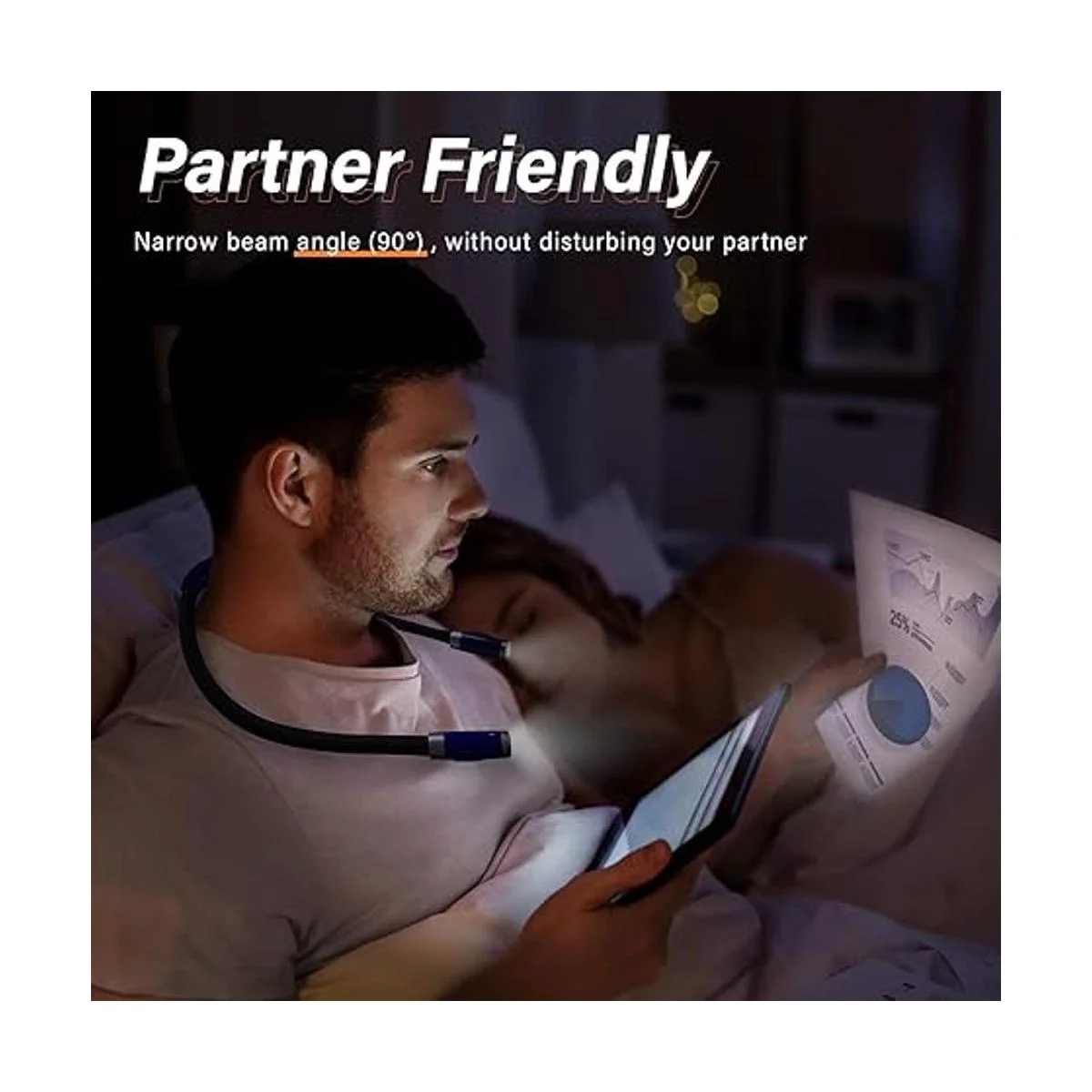 Apto para parejas Diseño especial de cabeza, ilumina la zona más pequeña con luz lo suficientemente brillante como para proteger la privacidad sin molestar a tu pareja dormida por la noche.