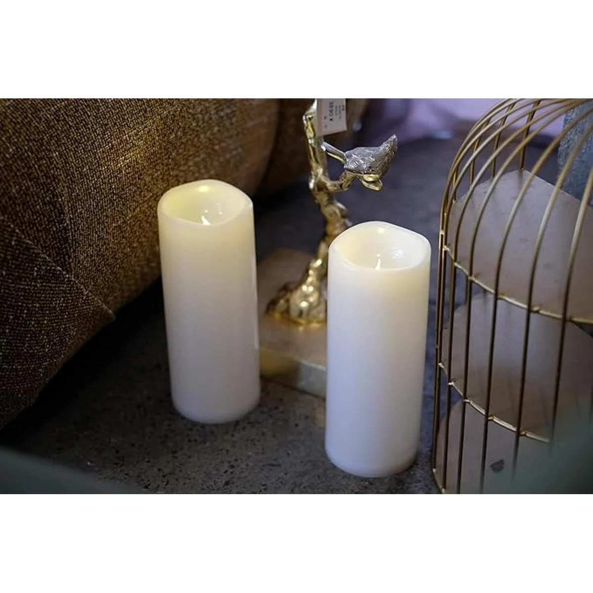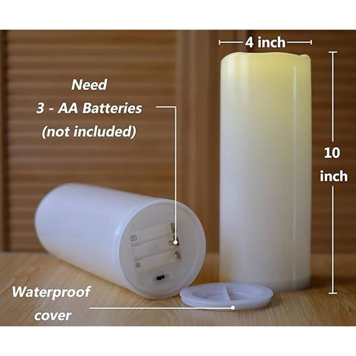 Velas de luz LED de pilas, sin llama, de 4 x 6 pulgadas, para exteriores, impermeable IP44, luz blanca cálida, con control remoto y temporizador, de plástico, no derrite, paquete de 2 velas